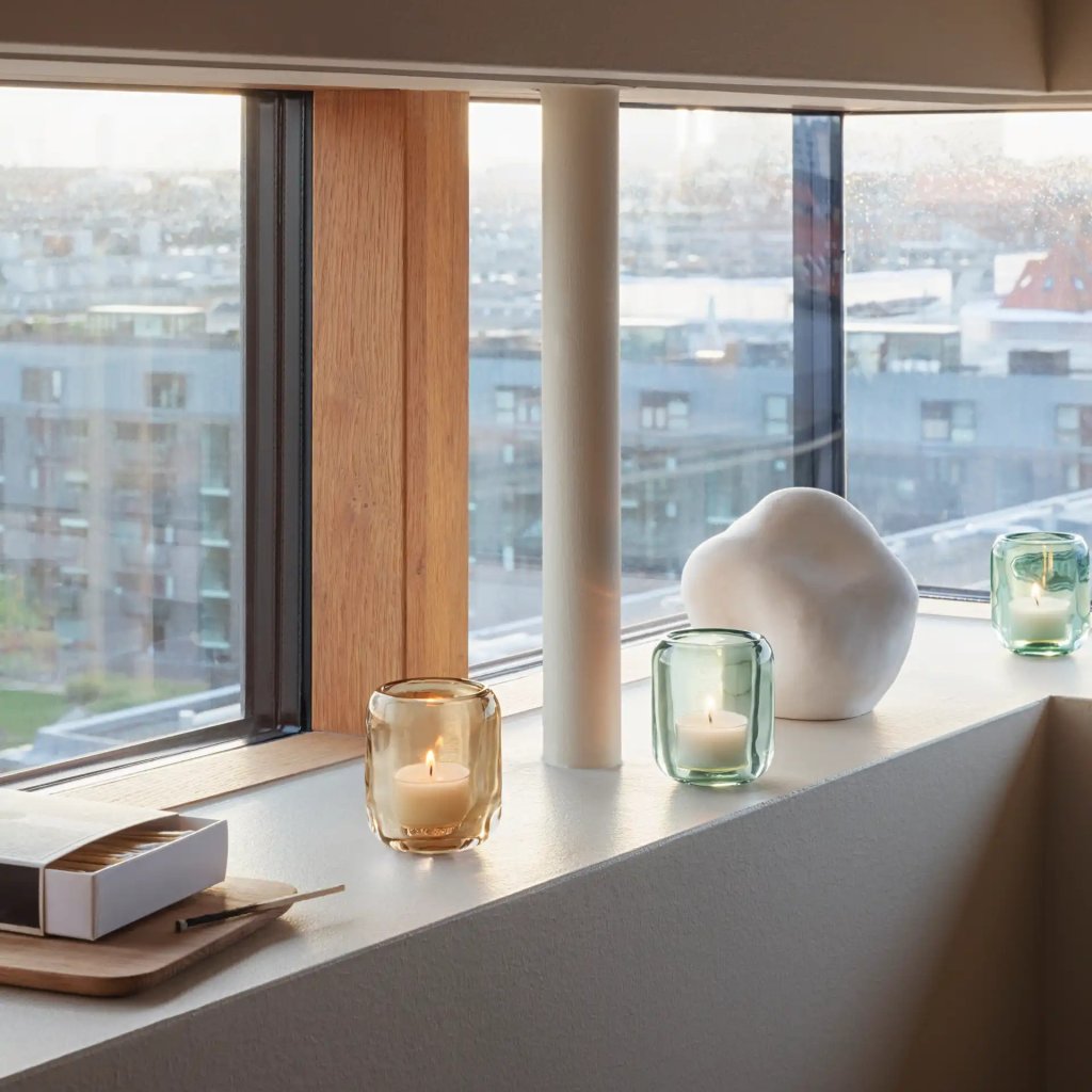 - dekorativer Kerzenhalter für Teelicht aus farbigem Glas