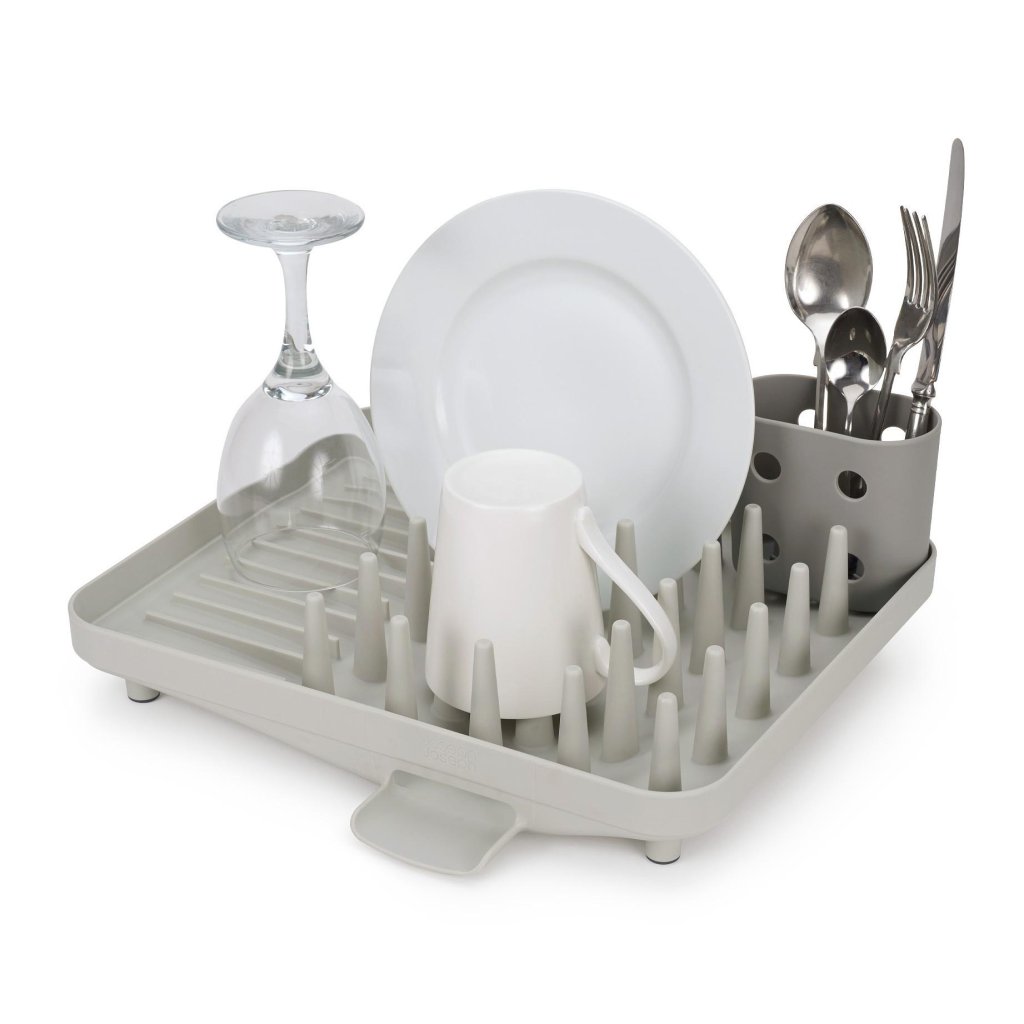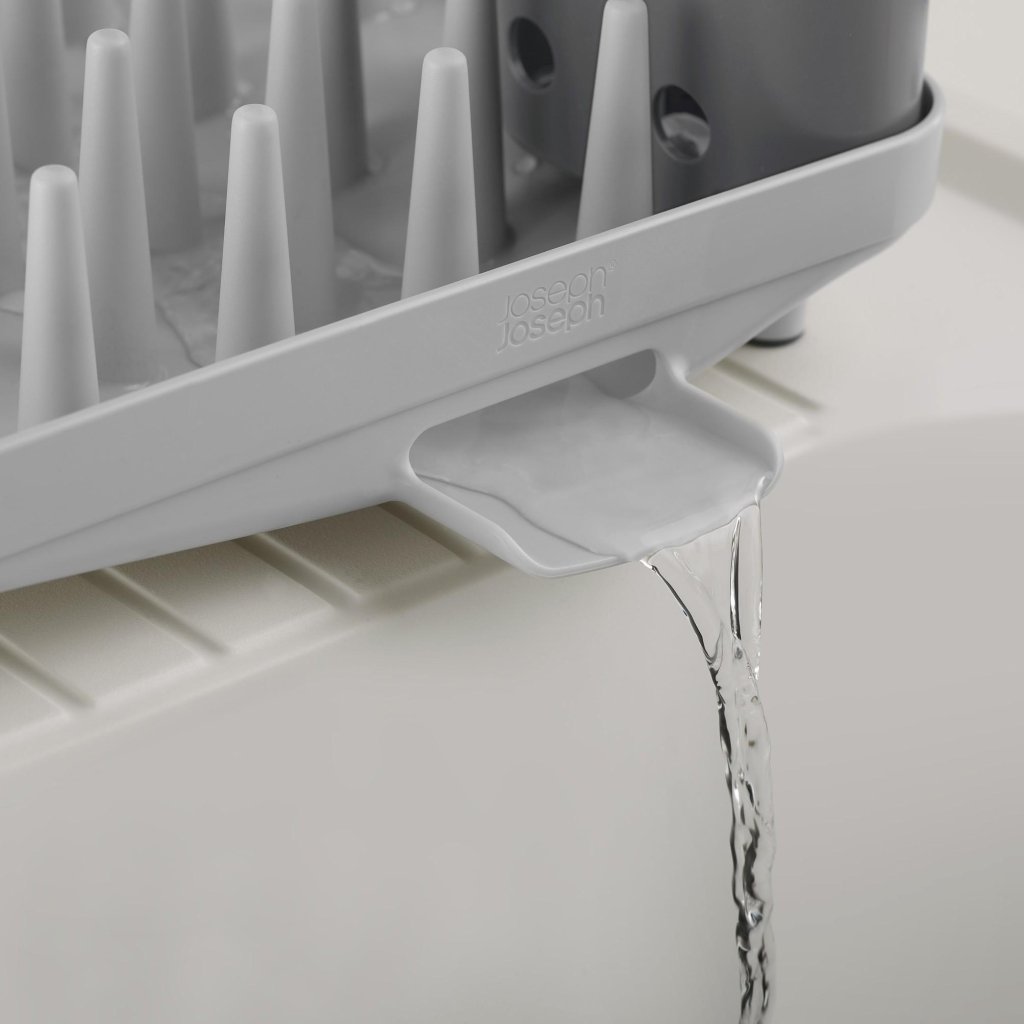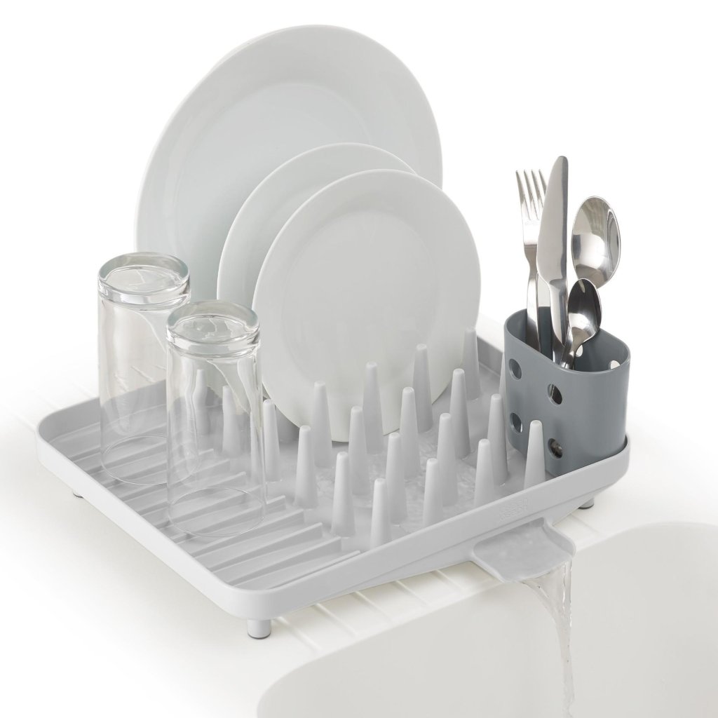 - Der kompakte Joseph Joseph DUO Geschirrabtropfständer ist eine praktische Lösung für das tägliche Abtropfen von Geschirr in kleineren Küchen oder dort, wo Platz auf der Arbeitsplatte gespart werden muss.