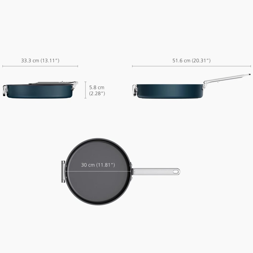 - Das elegante Design in Mitternachtsblau verleiht der Pfanne einen modernen Look und unterstreicht den Premium-Charakter der gesamten Serie SPACE.
