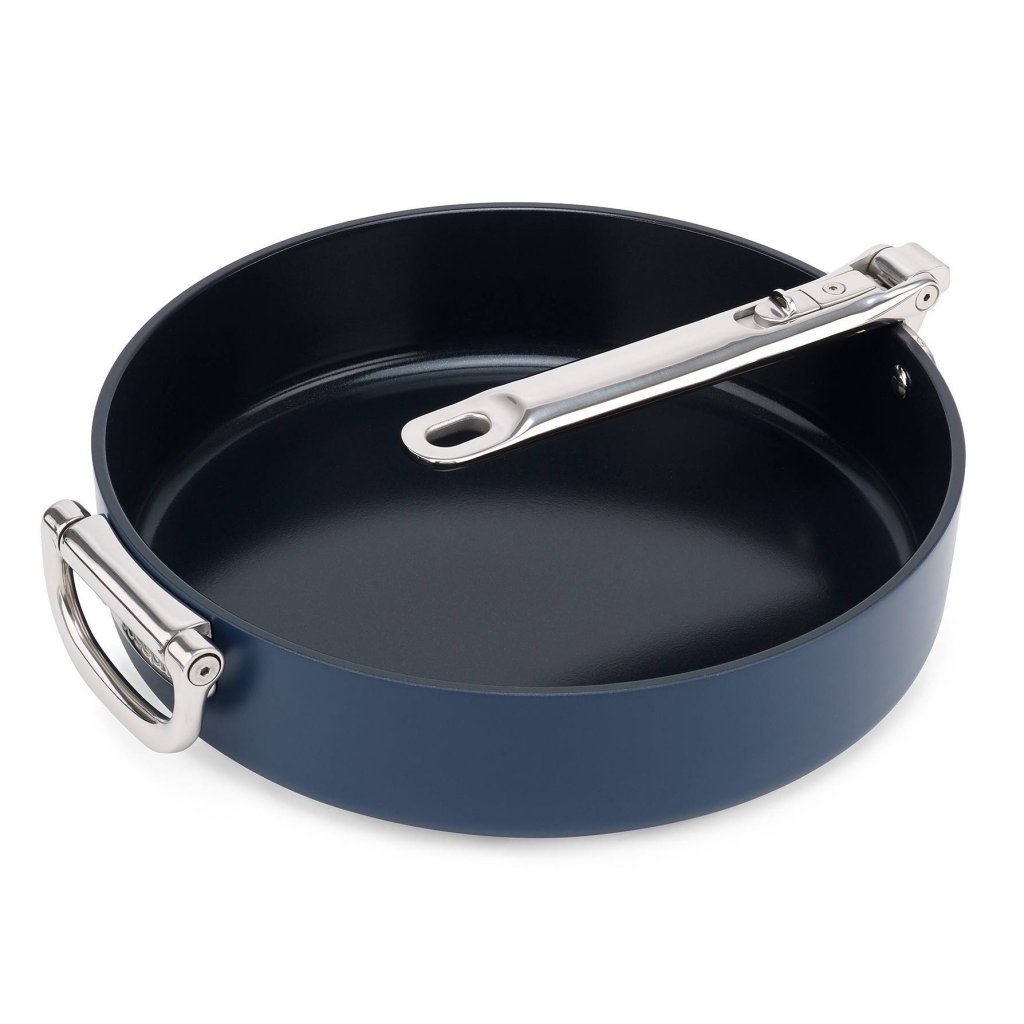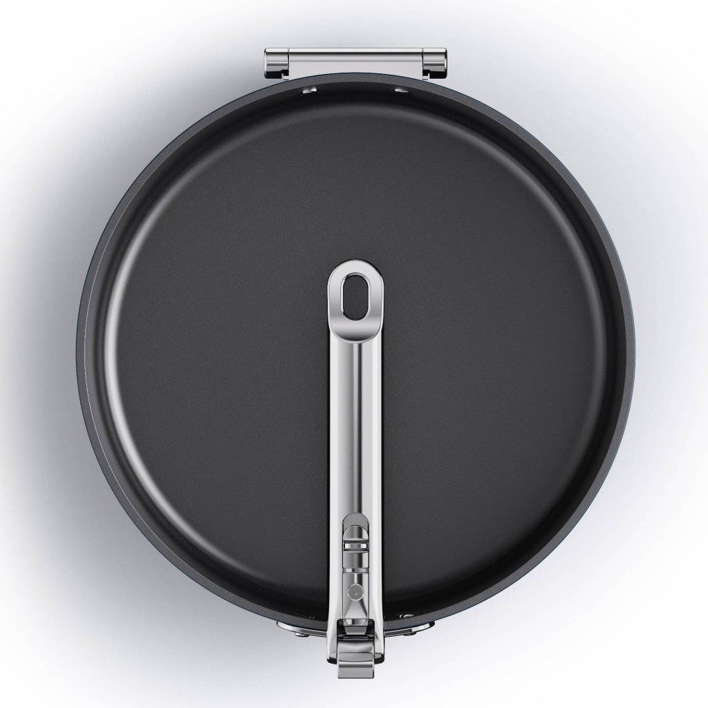 - Durch das Zusammenklappen des Hauptgriffs kann bis zu 50 % mehr Platz als bei herkömmlichen Pfannen gespart werden, was sie ideal für kleinere Küchen und begrenzte Räume macht.
