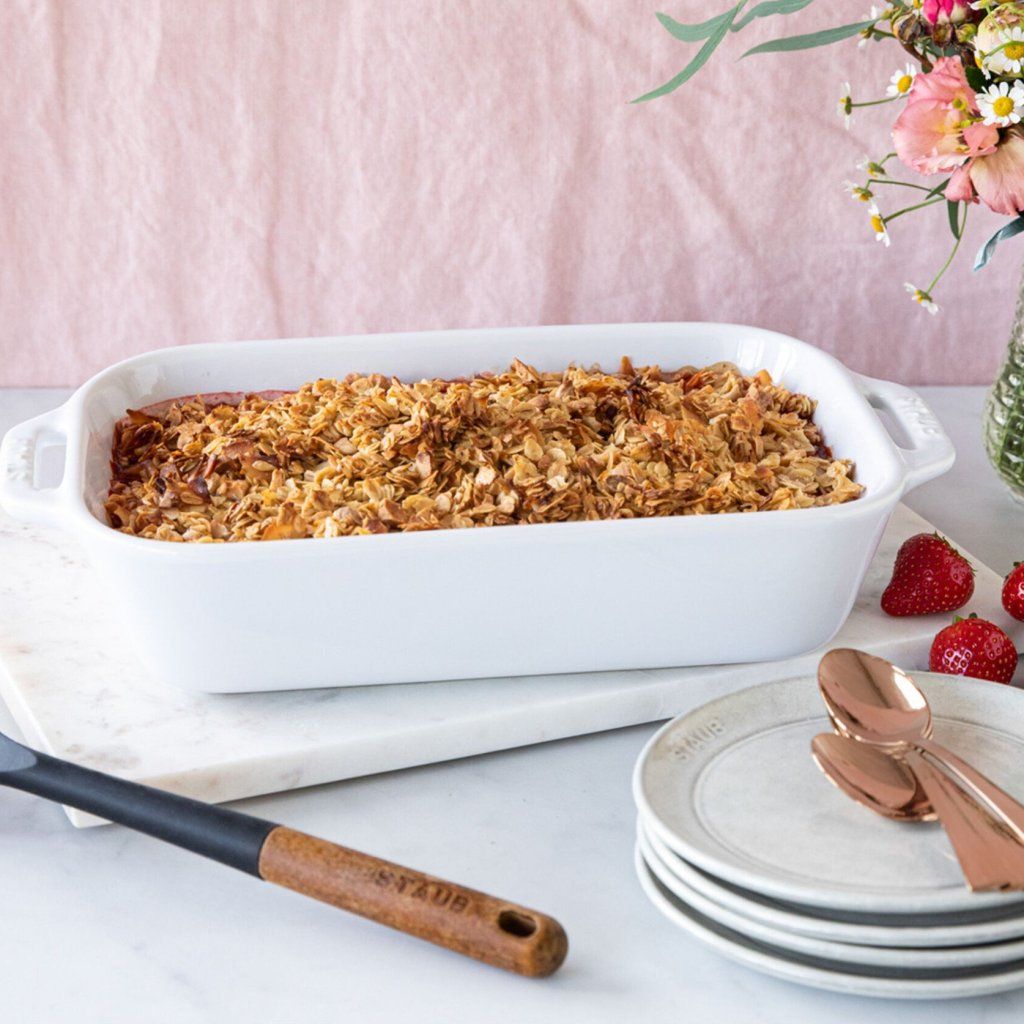 - rechteckige Keramikschüssel für jedes pikante oder süße Rezept im Ofen