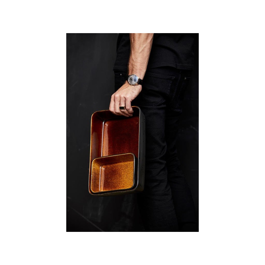 Auflaufform 19 x 14 cm, Schwarz/Bernstein, Steinzeug, Bitz