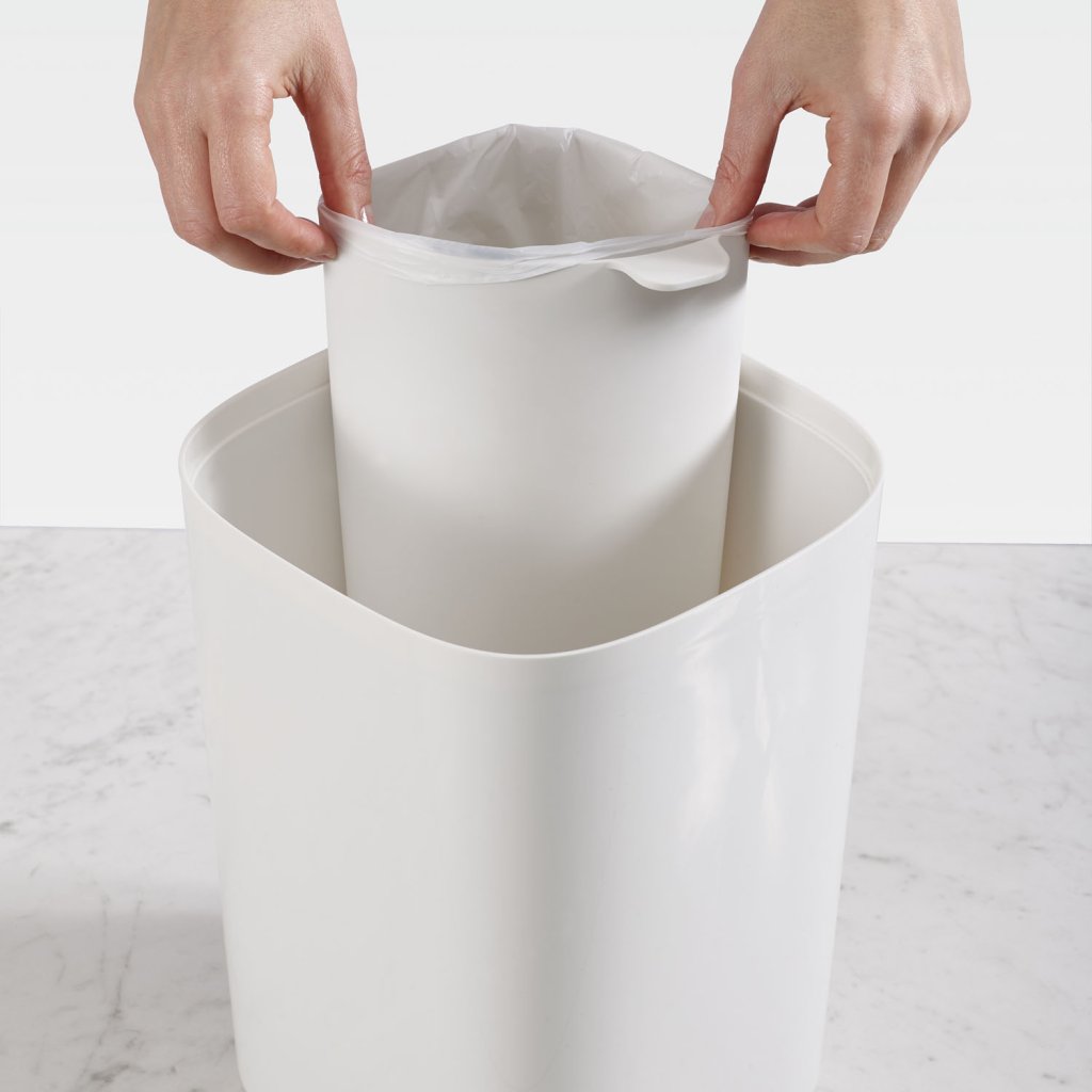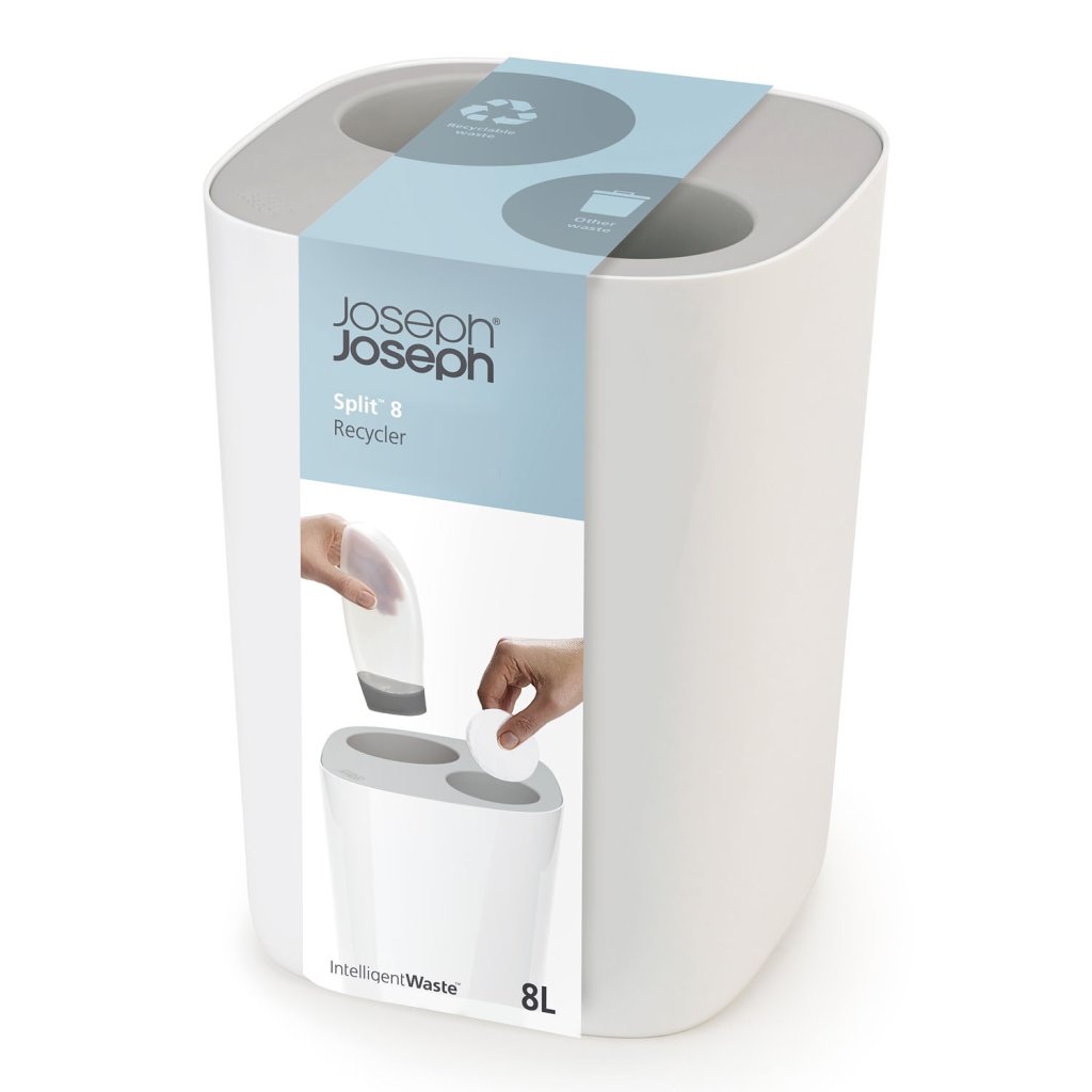 Recycling wird im Badezimmer oft vergessen. Also beschloss Joseph Joseph, das Problem zu lösen. Die getrennte Mülltonne ist mit einer kleineren Tonne für herkömmlichen Müll und einer größeren Tonne für sortierten Müllausgestattet. Das Fassungsvermögen des Hauptkorbes beträgt 8 l.