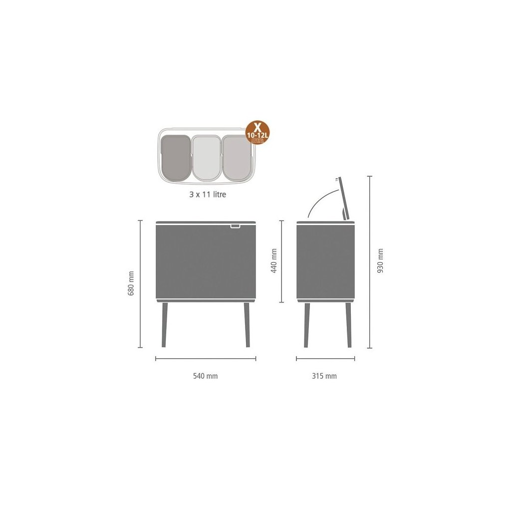 Touch Mülleimer BO 3 x 11 l, Stahl matt, Brabantia