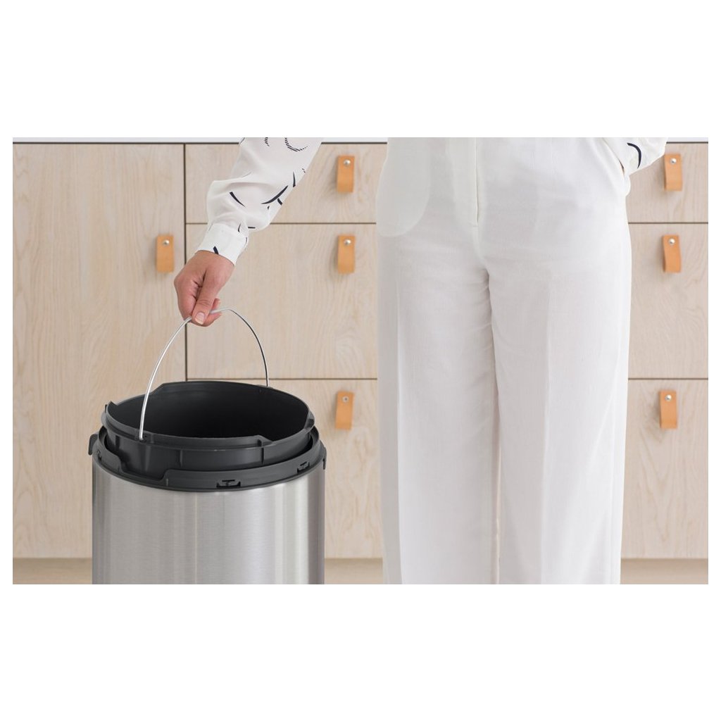 Ein brandneues Designstück von Brabantia kann den Abfall eines ganzen großen Haushalts aufnehmen und nimmt dennoch nicht viel Platzein. Beliebter Silent-Touch-Mechanismus, der ewig hält. Öffnen Sie es mit sanftem Druck. Spezielle Belüftungslöcher gegen Überdruck bei der Entnahme eines vollen Beutels.