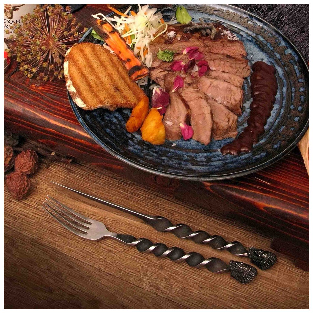 - stilvoll geschmiedetes Besteck aus deutschem Stahl DIN 1.4116 mit Patina