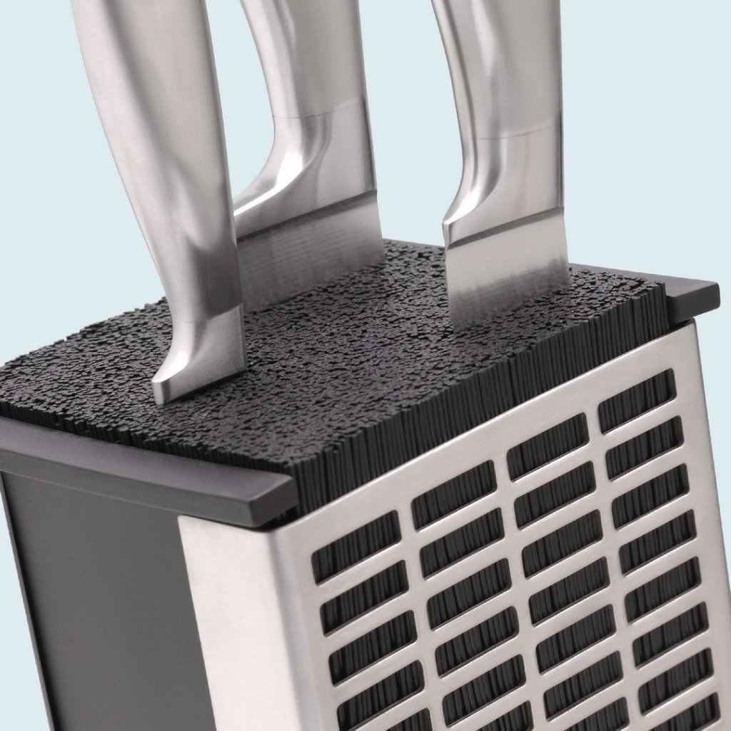 Mit diesem Messerborstenblock können Sie bis zu 7 Messer in den integrierten Borsten aufbewahren - diese Aufbewahrung ist sicher und schonend für die Klingen. Der Borsteneinsatz kann in der Spülmaschine gereinigt werden.