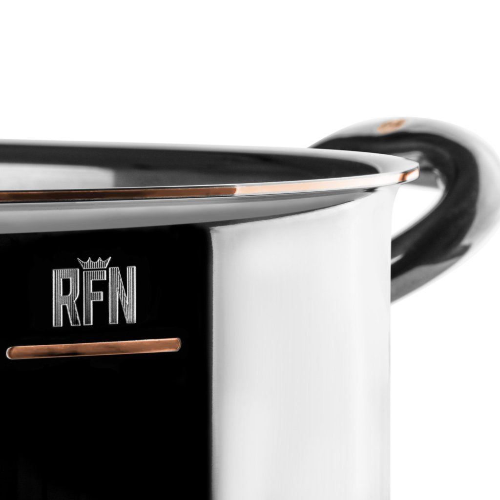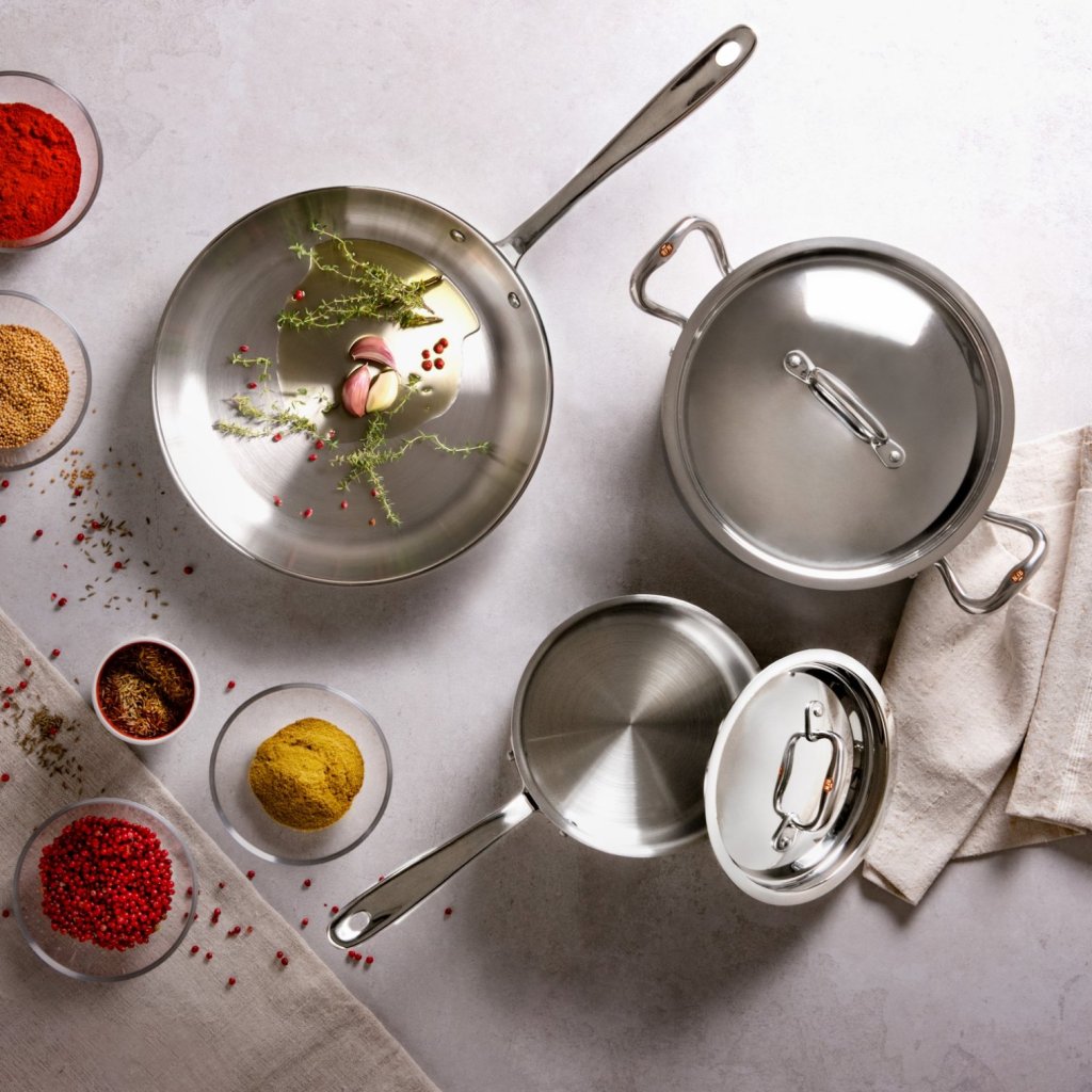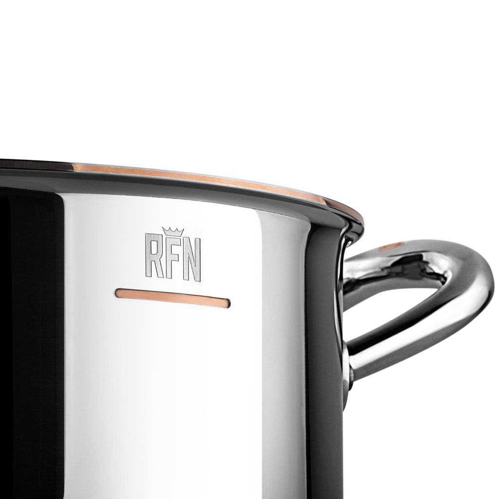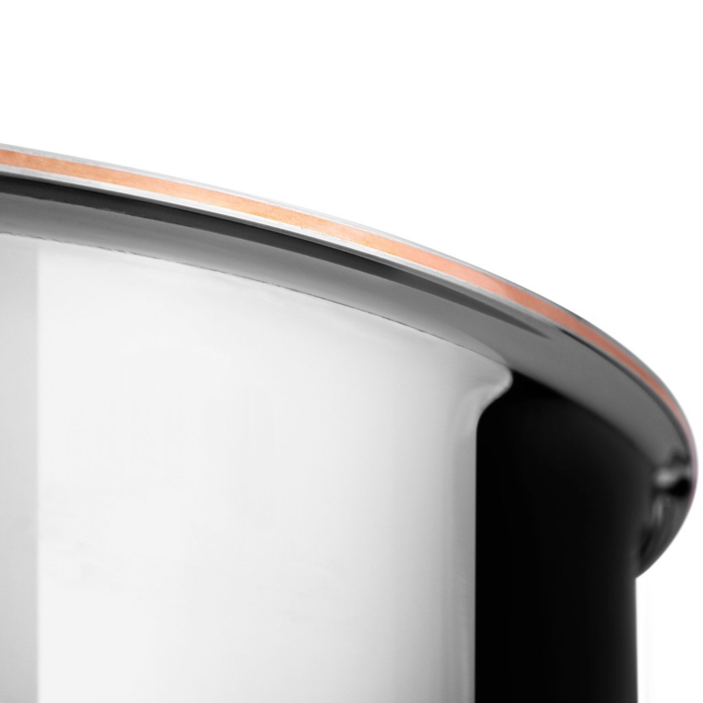 - griffe und Deckelgriff aus Edelstahl mit Kupfereinsatz bleiben beim Kochen kühl
