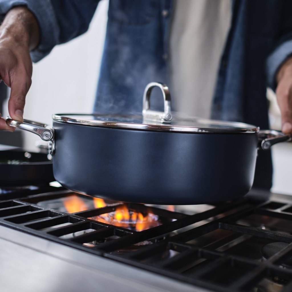 - Die Griffe sind fest angebracht und ermöglichen eine sichere Handhabung mit beiden Händen, selbst wenn eine voll gefüllte Kasserolle getragen wird.