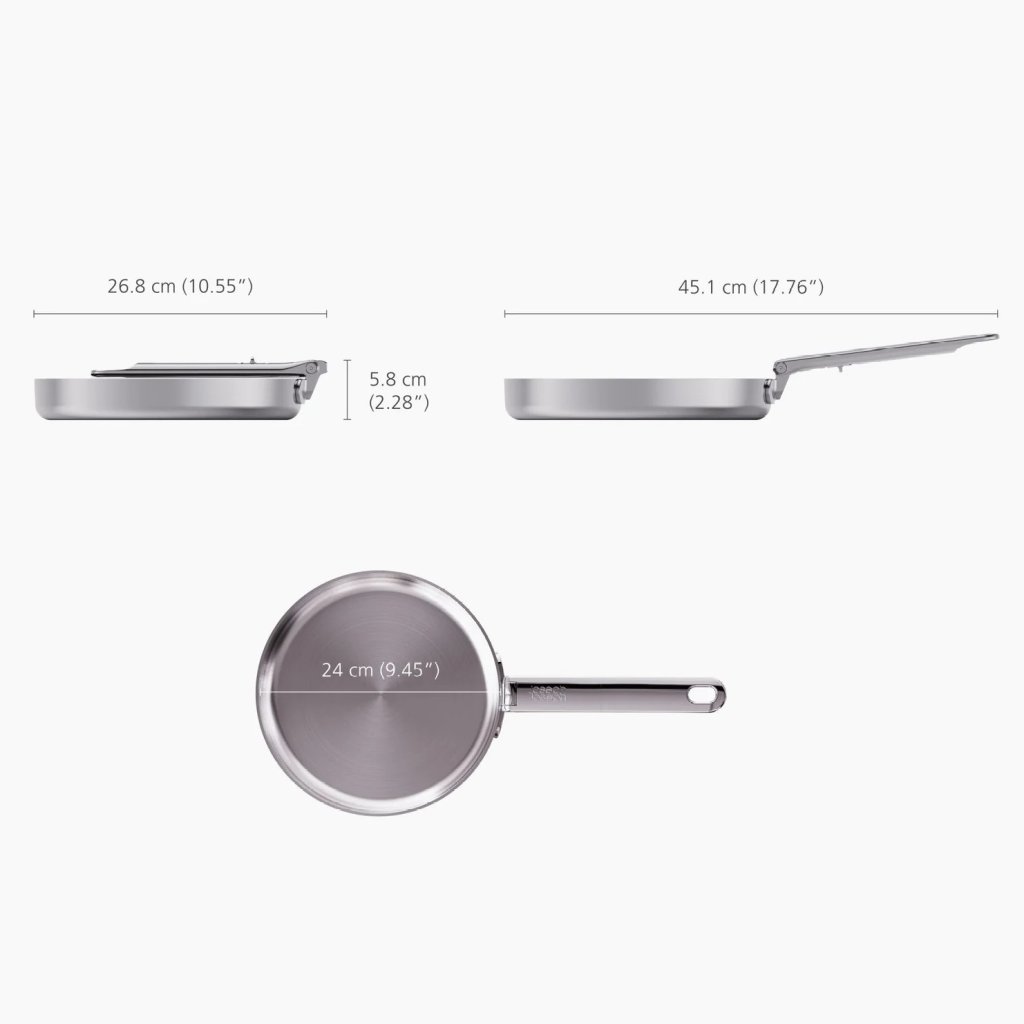 - Dank des klappbaren Griffs lässt sich die Pfanne leicht mit anderem Kochgeschirr derselben Serie stapeln, um den Stauraum effizient zu organisieren.