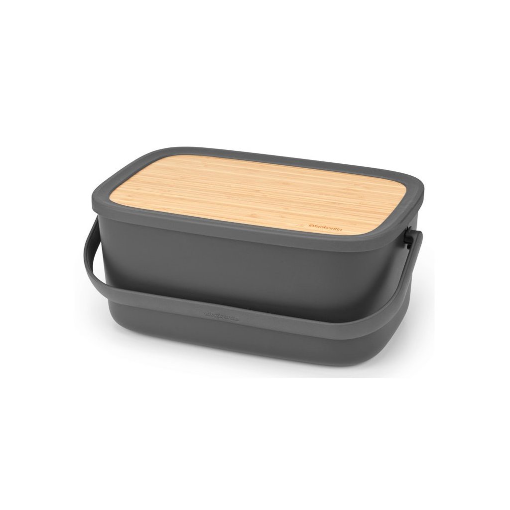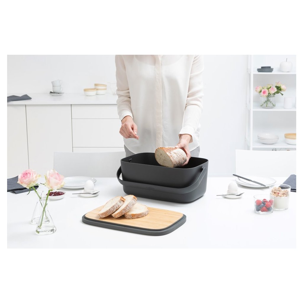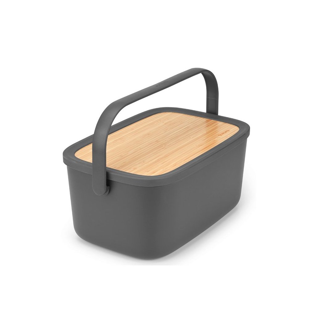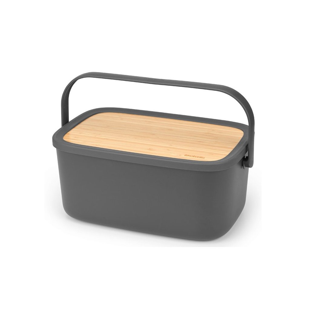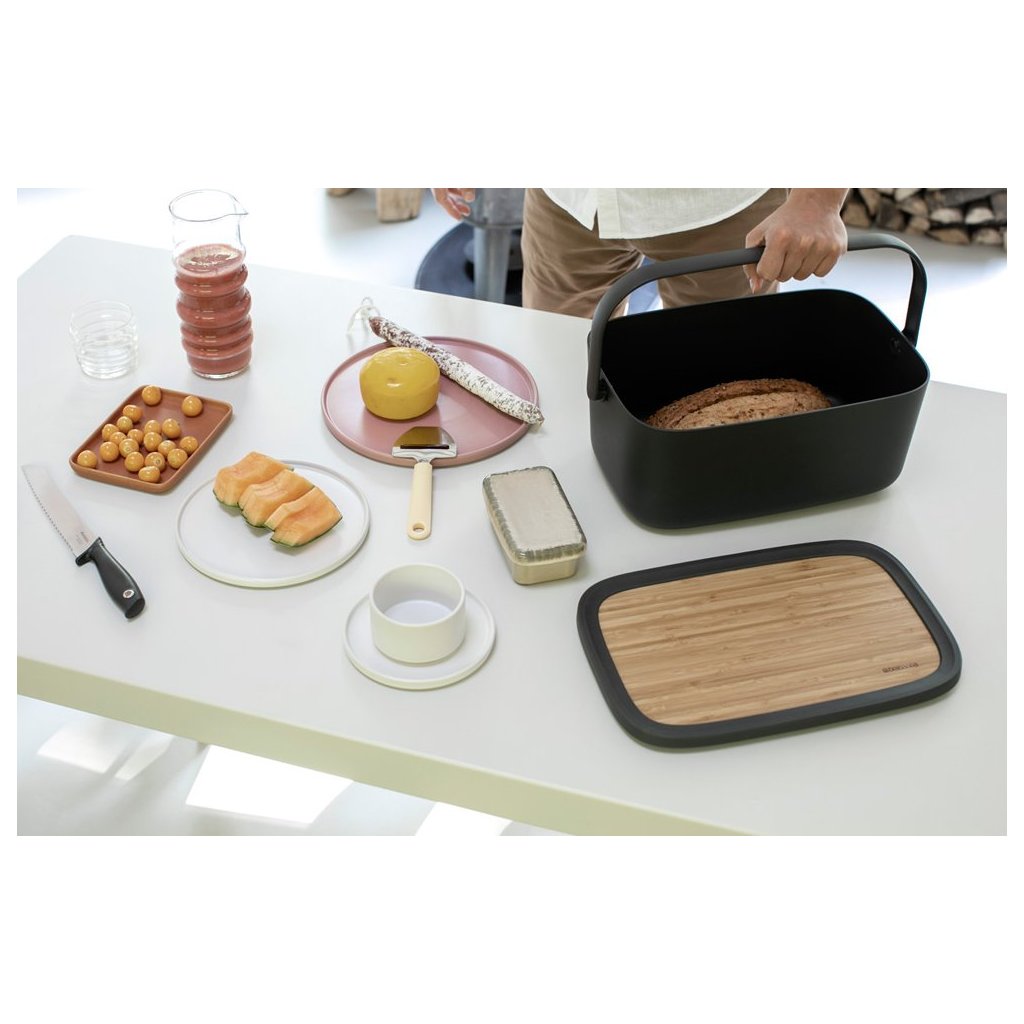 Egal, ob man mit der Familie schlemmt oder sich allein eine gemütliche Mahlzeit gönnt, der BrabantiaNothing Brotkasten macht den Tisch zum Picknick. Er hat einen schönen Bambusdeckel, der auch als Schneidebrettdient, und einen praktischen Tragegriff, damit du ihn zum Tisch oder zu einem Picknick im Garten mitnehmen kannst. Es passt bis zwei Brote, und wie die anderen Brottöpfe Brabantia , hat Nic einen geriffelten Boden für genau die richtige Belüftung.