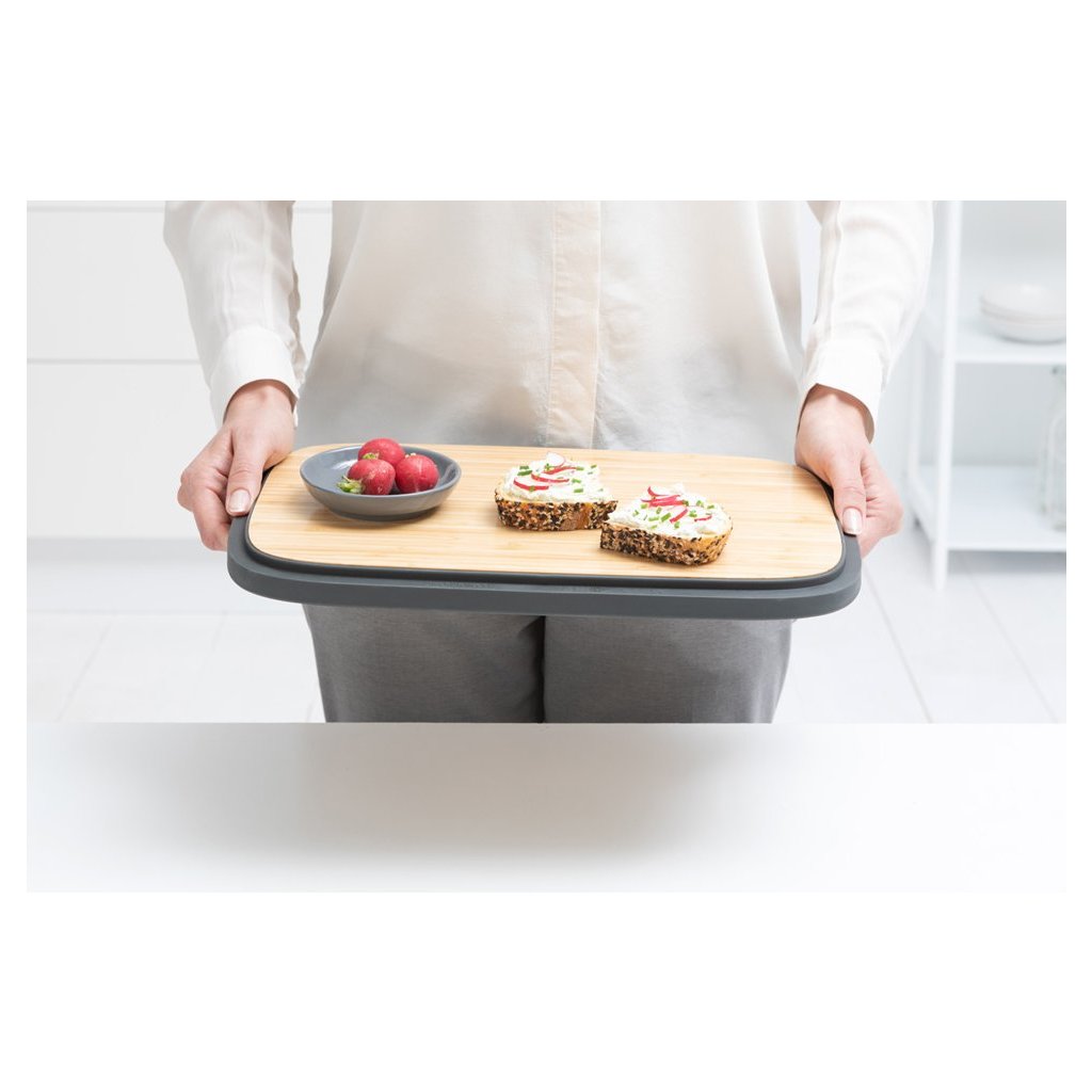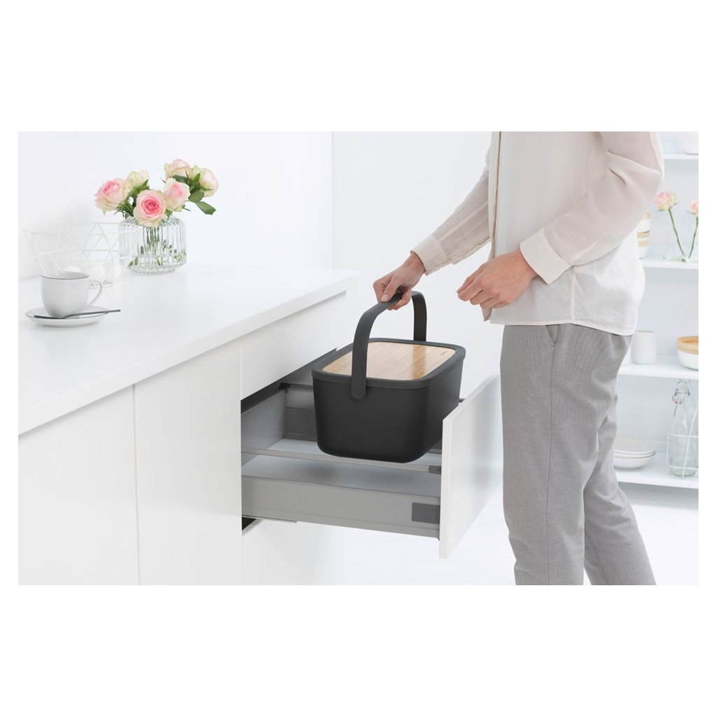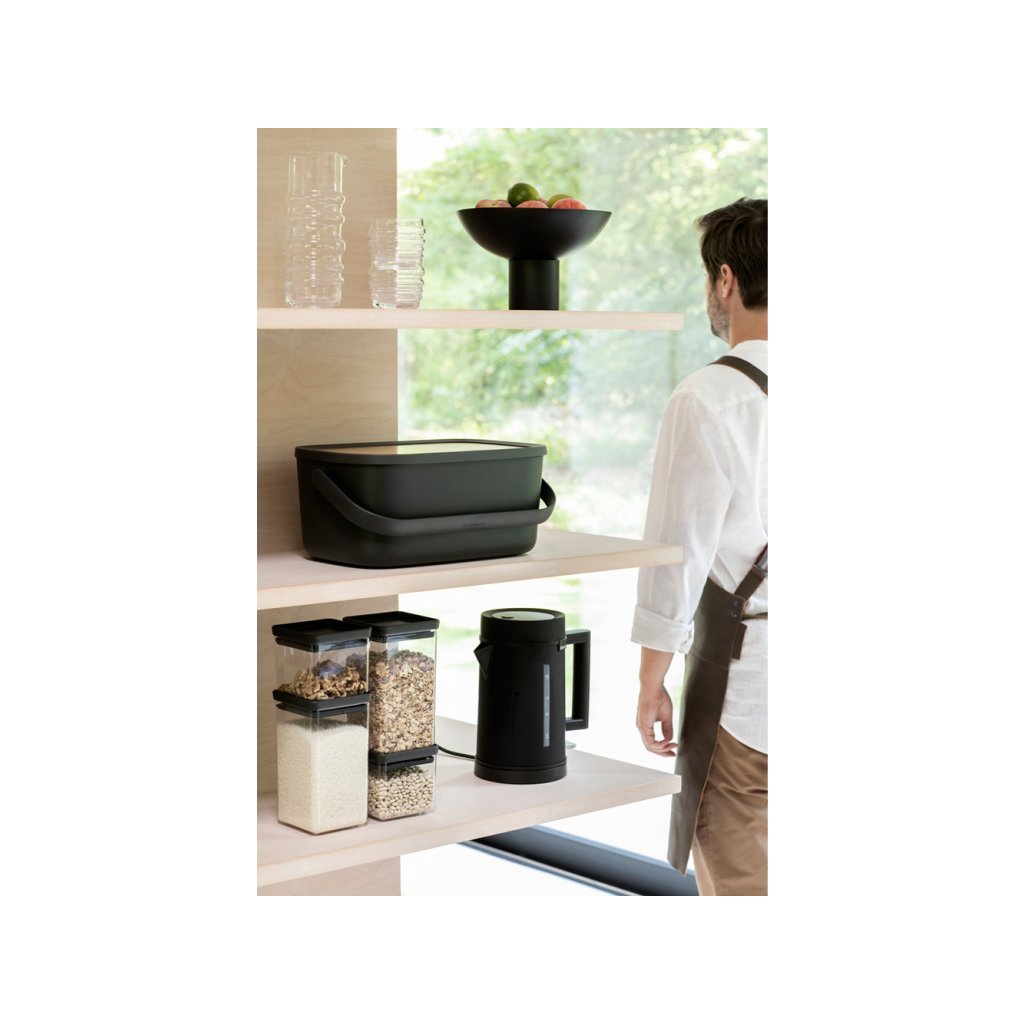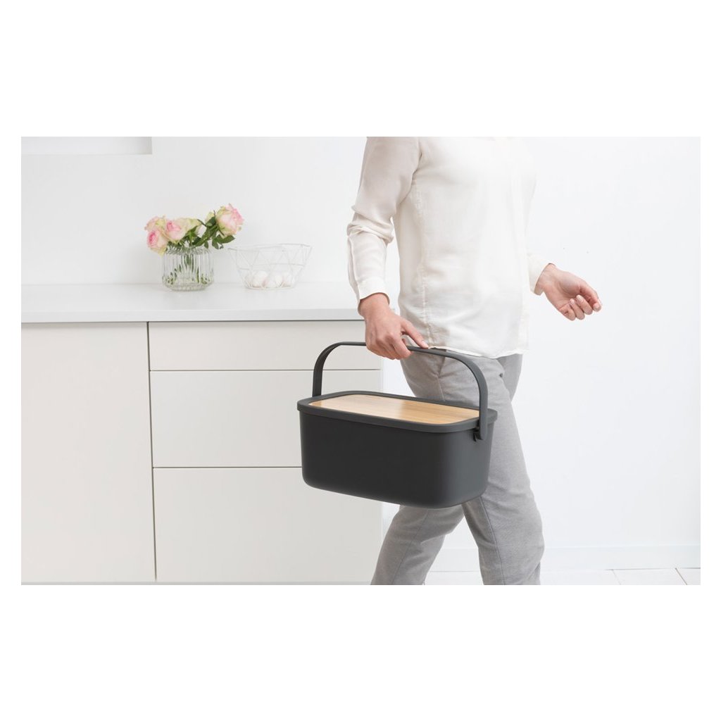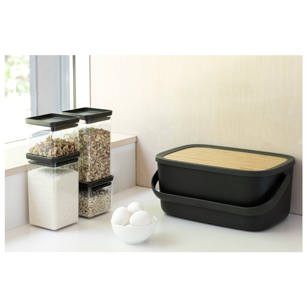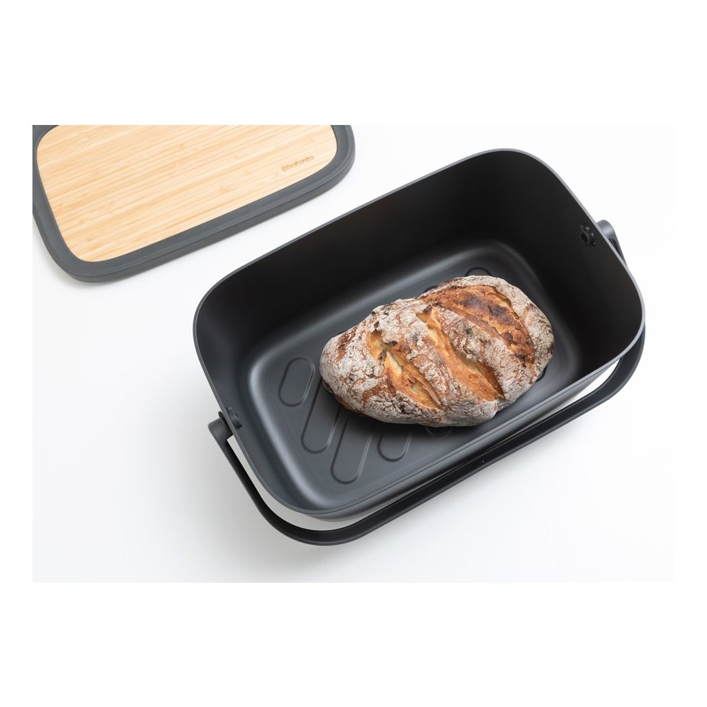 Egal, ob man mit der Familie schlemmt oder sich allein eine gemütliche Mahlzeit gönnt, der BrabantiaNothing Brotkasten macht den Tisch zum Picknick. Er hat einen schönen Bambusdeckel, der auch als Schneidebrettdient, und einen praktischen Tragegriff, damit du ihn zum Tisch oder zu einem Picknick im Garten mitnehmen kannst. Es passt bis zwei Brote, und wie die anderen Brottöpfe Brabantia , hat Nic einen geriffelten Boden für genau die richtige Belüftung.