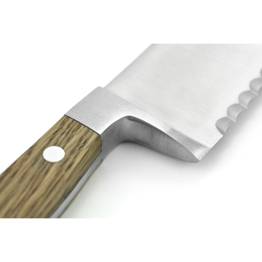 - ergonomisch geformter Griff aus Eichenholz mit drei Nieten und markanter Oberfläche für jederzeit sicheres Arbeiten