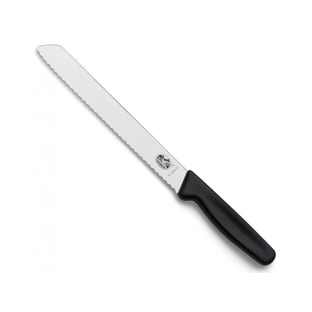 Küchenbrotmesser mit 18 cm langer, geriffelter Klinge. Der Griff ist ergonomisch geformt, so dass das Arbeiten mit dem Messer sehr angenehm ist. Leicht in der Hand, aber präzise zu schneiden - das sind die Küchenmesser Victorinox mit Kunststoffgriff.