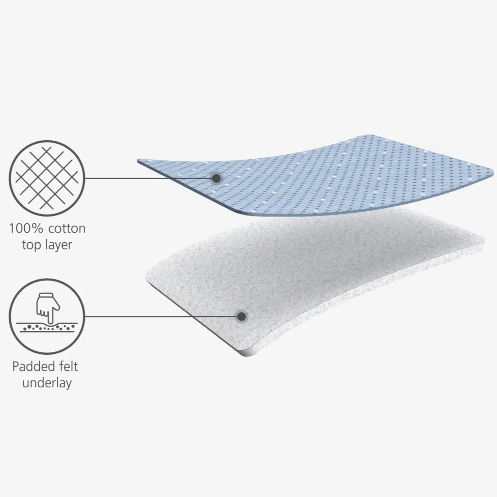 - dick gepolsterte Filzunterlage für besonders glattes Bügeln