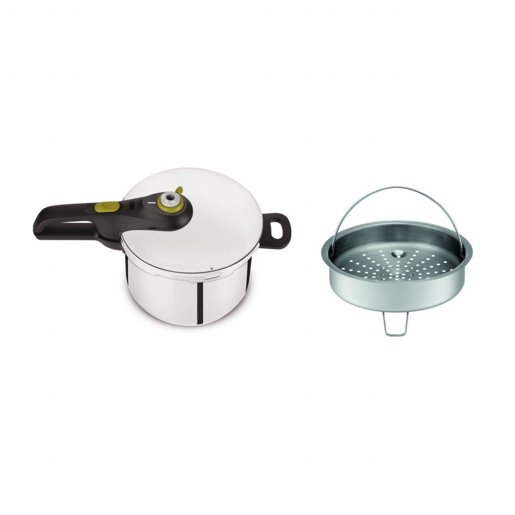 Seine 2 Programme machen Sie sich beim Kochen von Gemüse oder verschiedenen Fleischsorten, Fisch und Tiefkühlkost zunutze. Die Druckanzeige sagt Ihnen, wann Sie die Temperatur senken müssen. Das fünfstufige Sicherheitssystem (sicheres Öffnen, sicheres Schließen, Druckventil, Sicherheitsventil und Sicherheitsverschluss) garantiert extrem sicheres Druckgaren. Im Paket ist ein Dampfkorb für einfaches Dämpfen von Gemüse und Fisch enthalten. Außerdem hat der Topf vom Hersteller 10 Jahre Garantie.