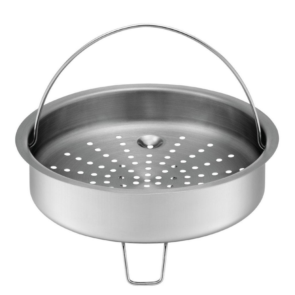 Seine 2 Programme sind nützlich zum Garen von Gemüse oder für verschiedene Fleischsorten, Fisch und Tiefkühlkost. Die Druckanzeige sagt Ihnen, wann Sie die Temperatur senken müssen. Das fünfstufige Sicherheitssystem (sicheres Öffnen, sicheres Schließen, Druckventil, Sicherheitsventil und Sicherheitsverschluss) garantiert extrem sicheres Druckgaren. Ebenfalls enthalten ist ein Dampfkorb zum einfachen Dämpfen von Gemüse und Fisch. Außerdem wird der Topf selbst vom Hersteller für 10 Jahregarantiert.