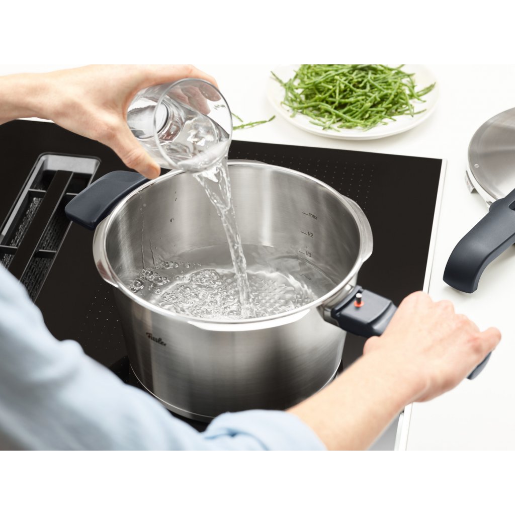 Es gibt keine bessere Möglichkeit, sich schnell und gesund zu ernähren, als im Schnellkochtopf zu kochen. Das Problem bei den meisten Schnellkochtöpfen ist jedoch der breite Griff, der sich oft nur schwer festhalten lässt. Der VITAVIT PREMIUM Schlaufentopfgriff ist aber auch für kleinere Frauenhände geeignet, seine einzigartige Form mit Loch verhindert ein Herausrutschen des Topfes.