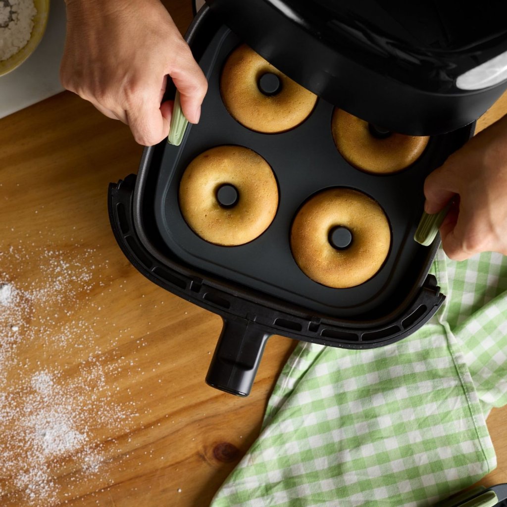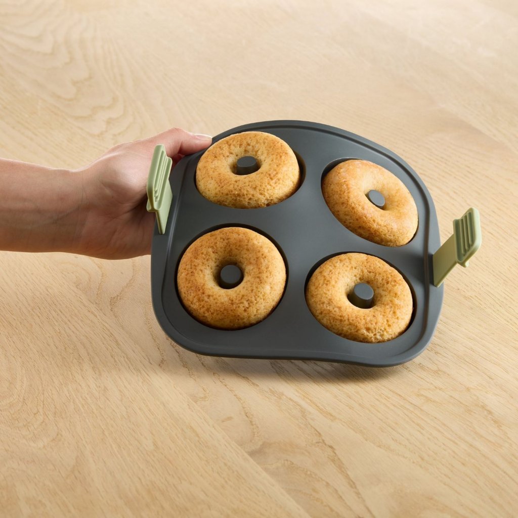 - Donutform Lékué ermöglicht die einfache und schnelle Zubereitung von hausgemachten Donuts direkt in einer Heißluftfritteuse ohne Frittieren in Öl.
