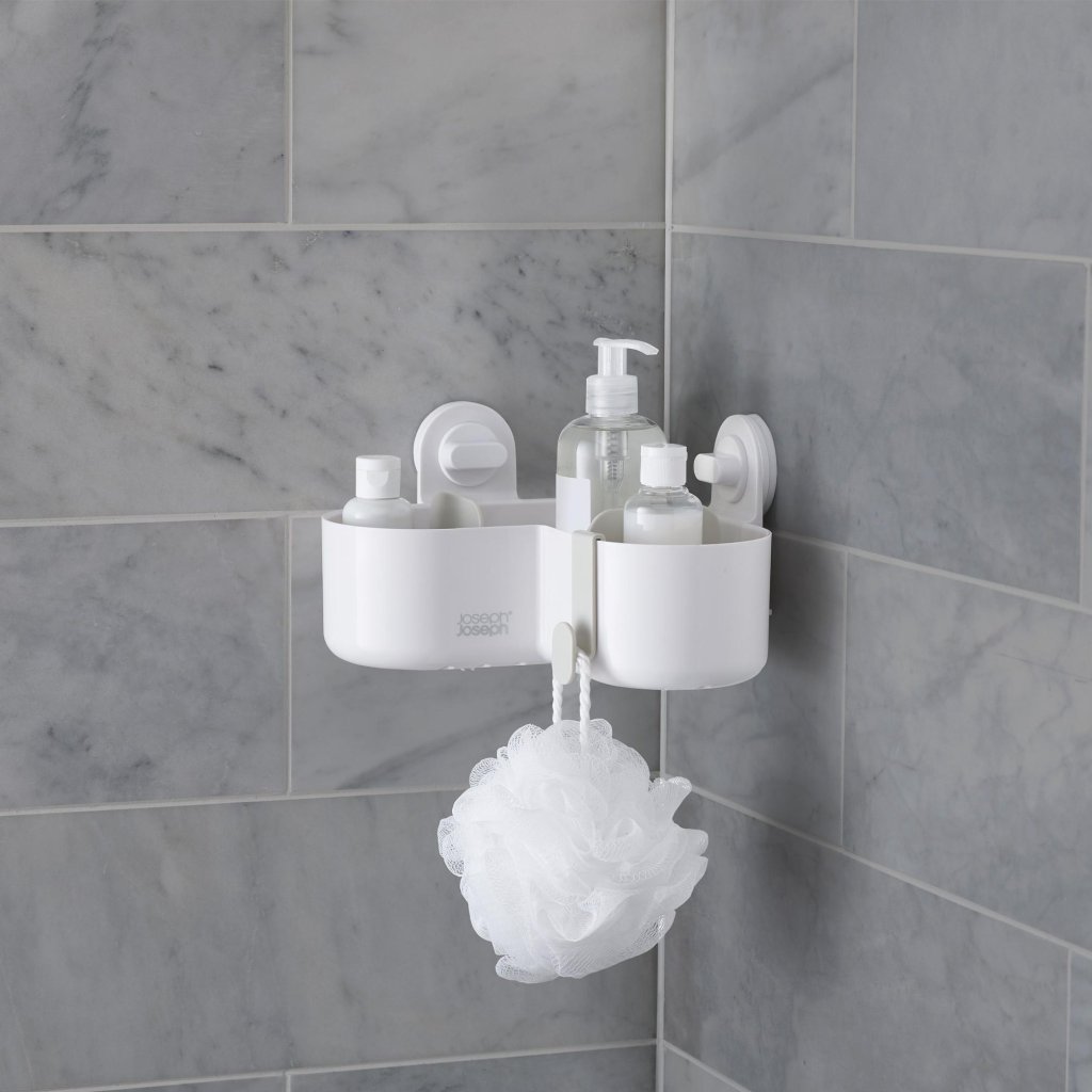 - Der Eck-Duschkorb Joseph Joseph DUO bietet eine praktische und übersichtliche Lösung zur Aufbewahrung von Seife, Shampoo und Duschgel direkt im Duschbereich.