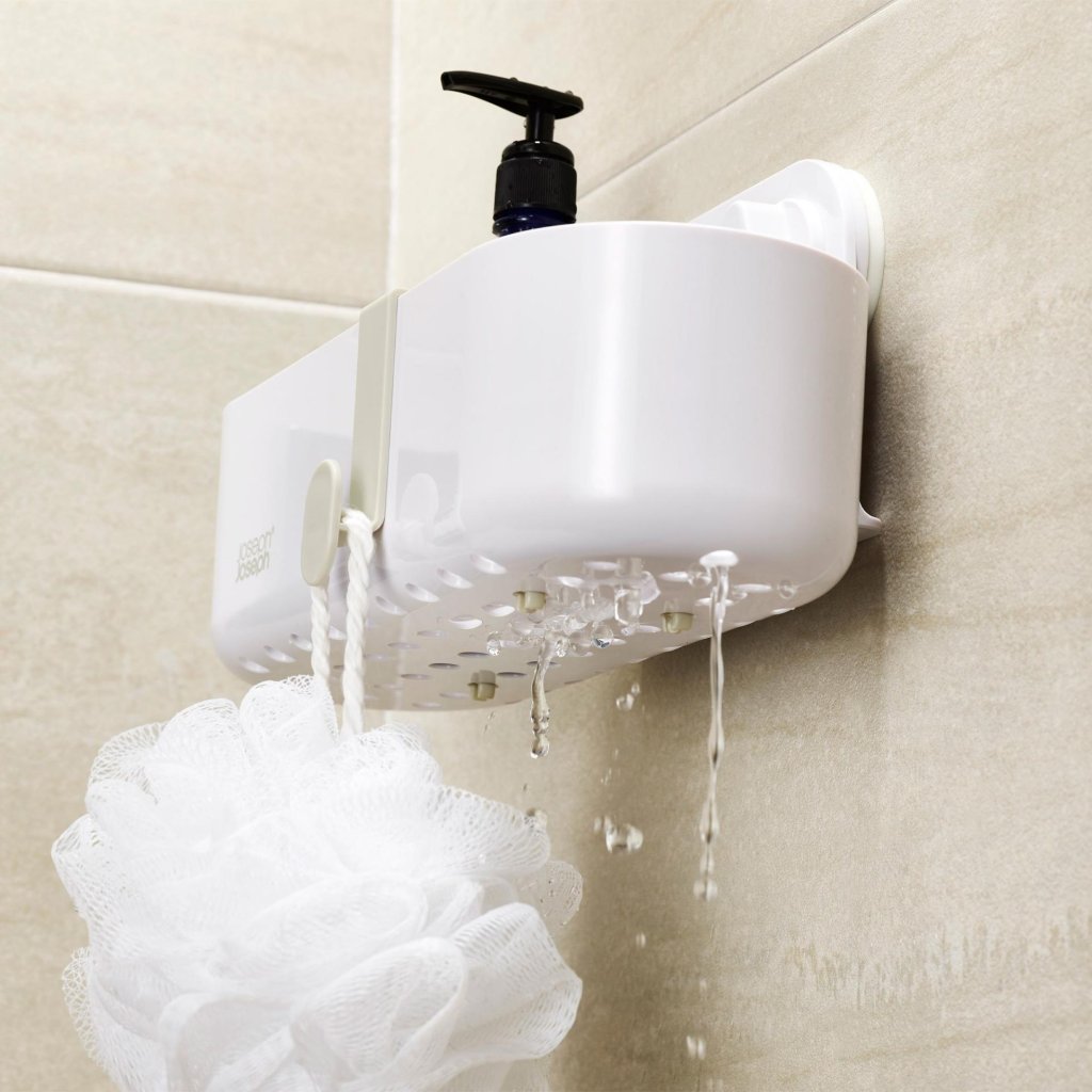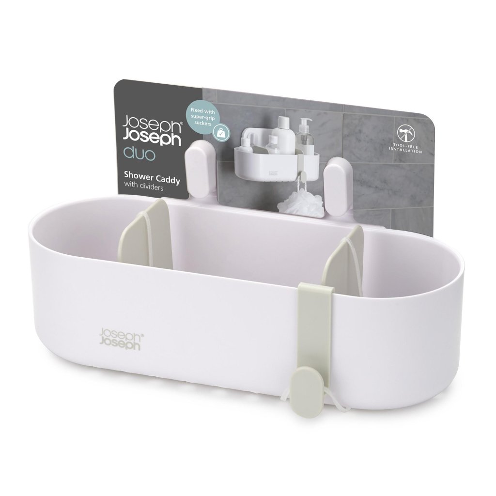- Der Duschkorb Joseph Joseph DUO bietet eine praktische Lösung zur übersichtlichen Aufbewahrung von Seife, Shampoo und Duschgel direkt im Duschbereich.