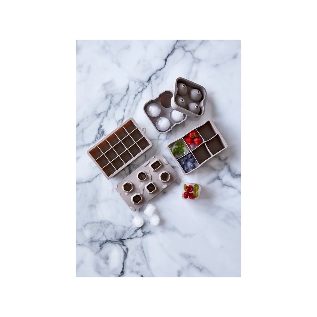 Eiswürfelform aus Silikon in sechs verschiedenen Designs. Dank des flexiblen Silikons lassen sich die Eiswürfel leicht aus der Form lösen, ohne zu brechen oder zu splittern. Spülmaschinenfest.