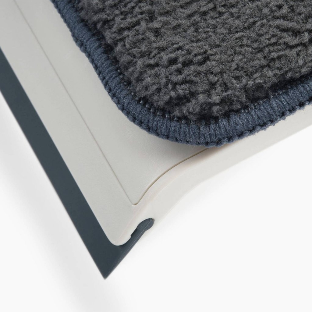 - Der flexible Silikonabstreifer entfernt schnell überschüssiges Wasser und hinterlässt eine saubere, karten- und wischfreie Oberfläche.