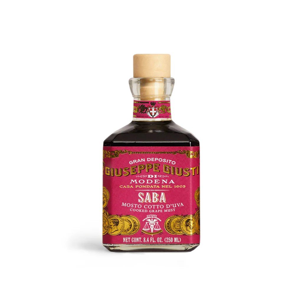 - Giusti SABA ist eine süße Traube Sirup , die aus gekochtem Most hergestellt wird, einer traditionellen Zutat, die seit der Römerzeit verwendet wird