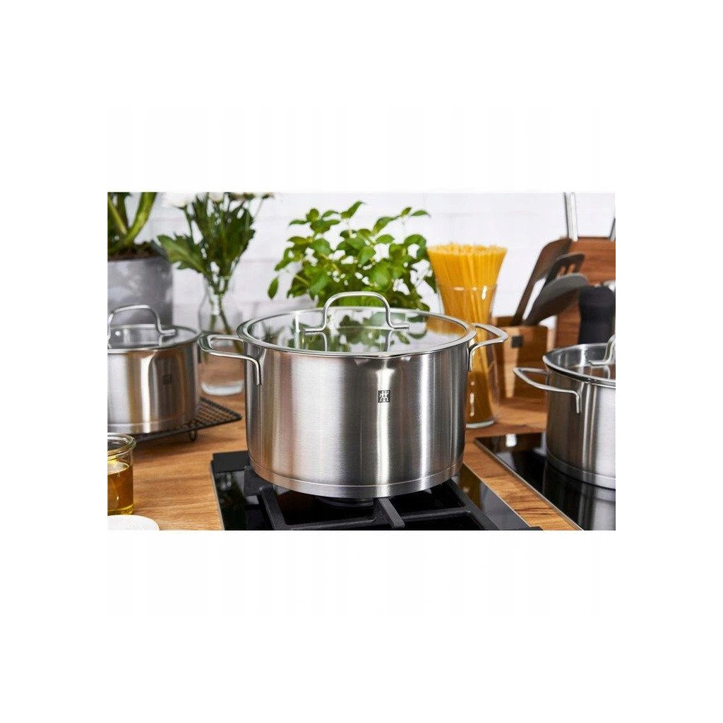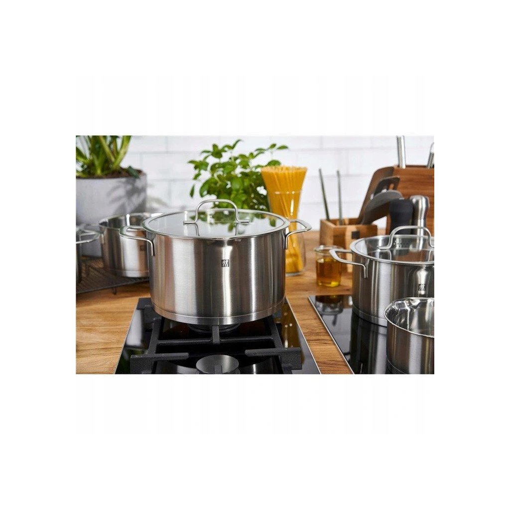 Das TrueFlow Edelstahl-Kochgeschirrset von Zwilling ist die ideale Ausstattung für begeisterte Hobbyköche, die hochwertiges Design und perfekte Funktionalität schätzen. Das Kochgeschirr ist für Induktionsflächen und für Backöfen bis 180°C (ohne Deckel bis 250°C) geeignet.