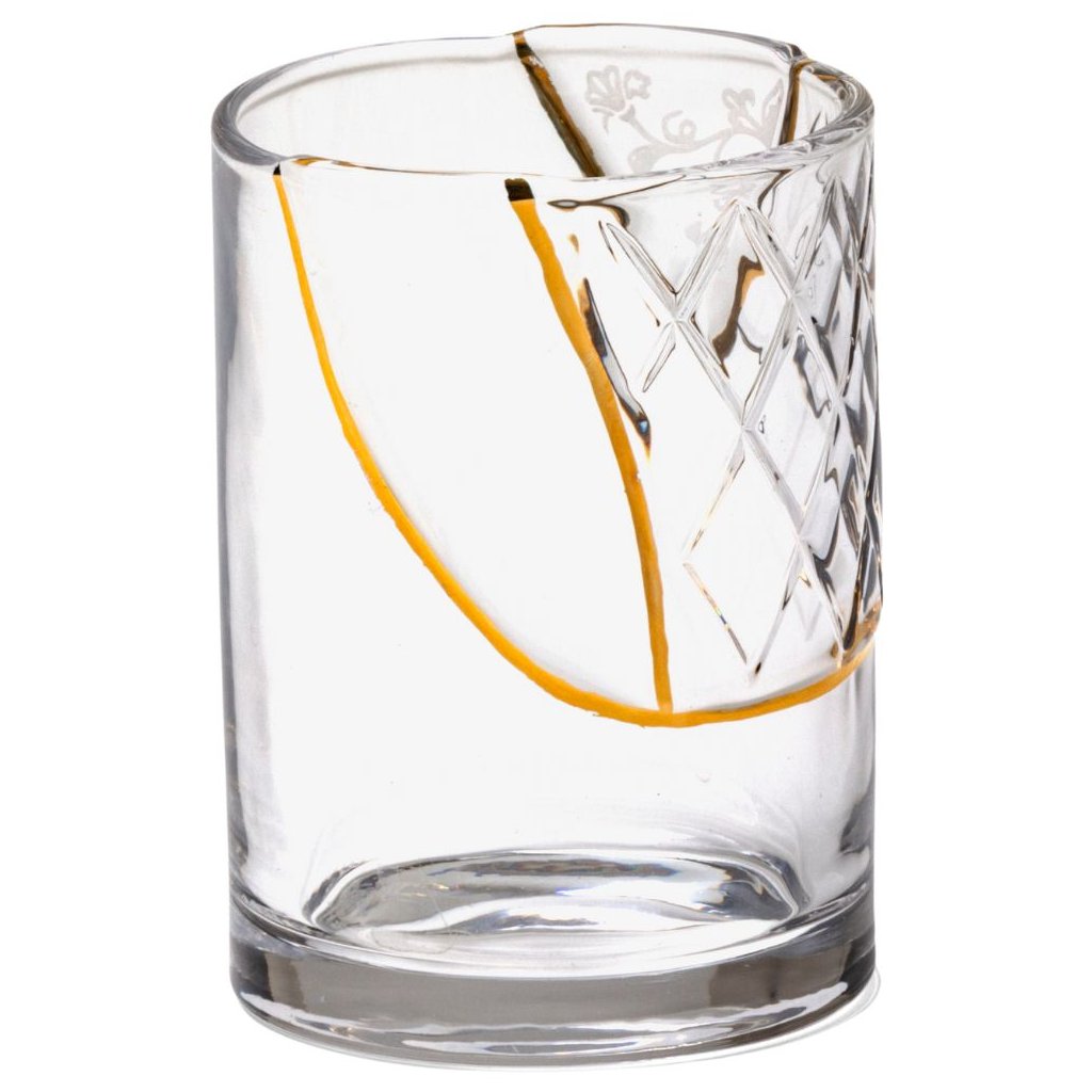 Trinkglas KINTSUGI 2 10,5 cm, Klarglas und Gold, Seletti