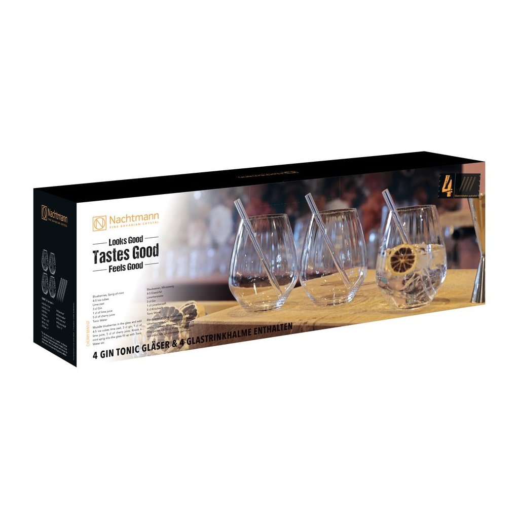 Gin & Tonic Glas TASTES GOOD mit Trinkhalmen, 4er-Set, 625 ml, Nachtmann