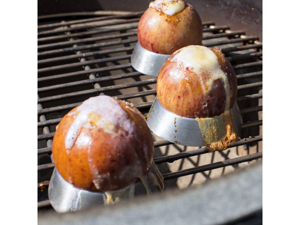 Rundes Gemüse lässt sich nur schwer in einer Position auf dem Grillrost halten. Aus diesem Grund hat BGE Grillringe entwickelt. Artischocken, Paprika, Äpfel oder Zwiebeln werden einfach auf die Nadel des Rings aufgespießt. Heiße Luft strömt durch die Mitte des Rings und zirkuliert um ihn herum, um ein gleichmäßiges Backen zu gewährleisten.