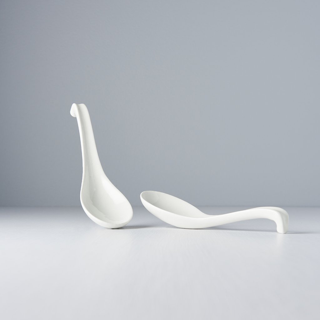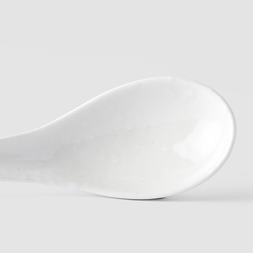 Weißer Keramiklöffel von Made in Japan ist handgefertigt aus hochwertiger Naturkeramik, die frei von Schadstoffen und Metallen ist. Sie können es verwenden, wenn Sie asiatische Suppenessen, z.B. Pho Bo, Tom Yum usw., wo man Nudeln/Reis mit Stäbchen und Saft/Suppemit einem Löffel schöpft. Jedes Stück ist ein Original. Die Keramik wird direkt aus Japan importiert. Er ist spülmaschinen- und mikrowellenfest.