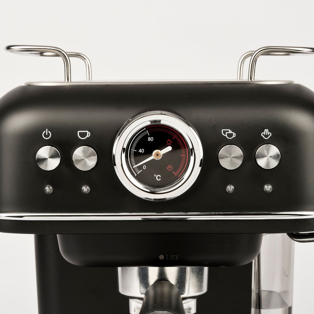 - das eingebaute Thermometer ermöglicht Ihnen die Kontrolle der Wassertemperatur für perfekte Espresso-Ergebnisse