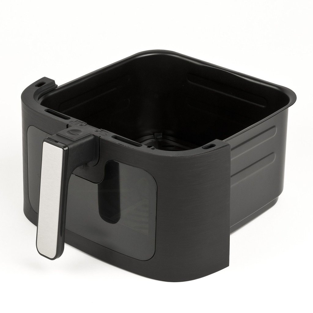- Transparentes Sichtfenster an der Vorderseite des Korbs ermöglicht die Sichtkontrolle der zubereiteten Speisen, ohne das Gerät zu öffnen