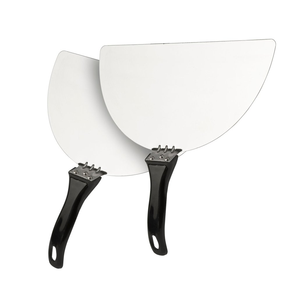 - zwei Paddel aus rostfreiem Stahl mit einem Durchmesser von 28 cm sind im Lieferumfang enthalten, um die vorbereitete Pizza leicht einlegen und transportieren zu können