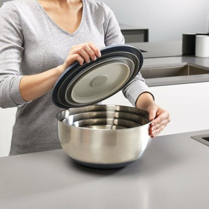 Alle Küchenwerkzeuge und Zubehörteile von Joseph Joseph sind aus hochwertigen Materialien gefertigt und bieten ein modernes Design, das für alle Arten von Küchenstilen geeignet ist. Sie können aus einer Reihe von Farben wählen, darunter zeitlose Grau- oder Weißtöne sowie farbenfrohere und kräftigere Optionen.
