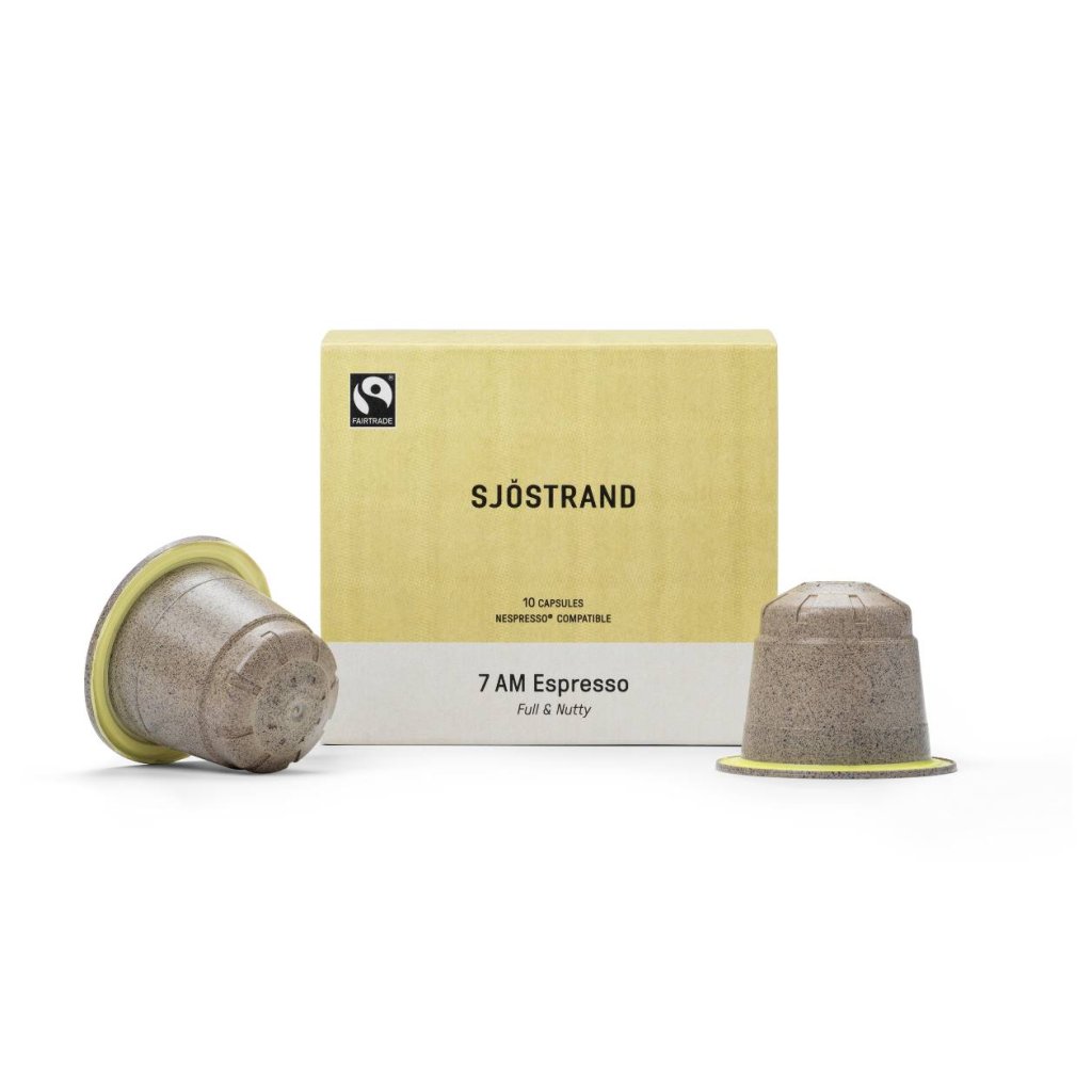 - Neben den 7 AM ESPRESSO-Kapseln bietet die Marke Sjöstrand auch andere Varianten an – zum Beispiel die BOOST-Kapseln für einen Energieschub – bei denen stets Wert auf Nachhaltigkeit und Qualität gelegt wird.