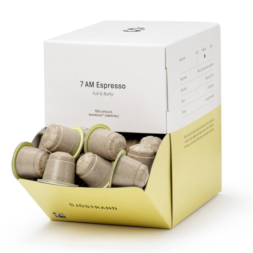 - Neben den 7 AM ESPRESSO-Kapseln bietet die Marke Sjöstrand auch andere Varianten an – zum Beispiel die BOOST-Kapseln für einen Energieschub – bei denen stets Wert auf Nachhaltigkeit und Qualität gelegt wird.