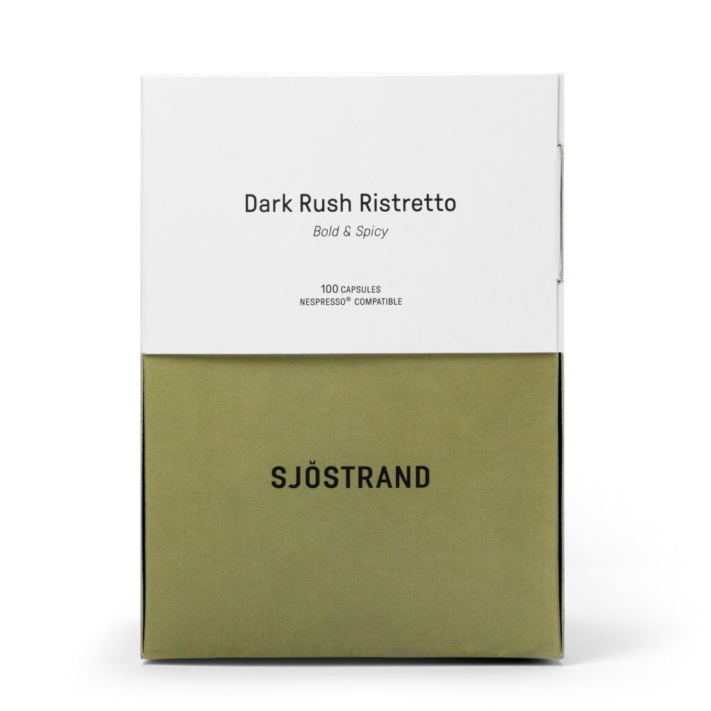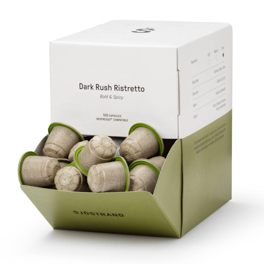 - Die Kaffeekapseln Sjöstrand DARK RUSH RISTRETTO bieten ein außergewöhnliches Erlebnis für Liebhaber von starkem und intensivem Kaffee, die gleichzeitig zu einer nachhaltigeren Zukunft beitragen möchten.