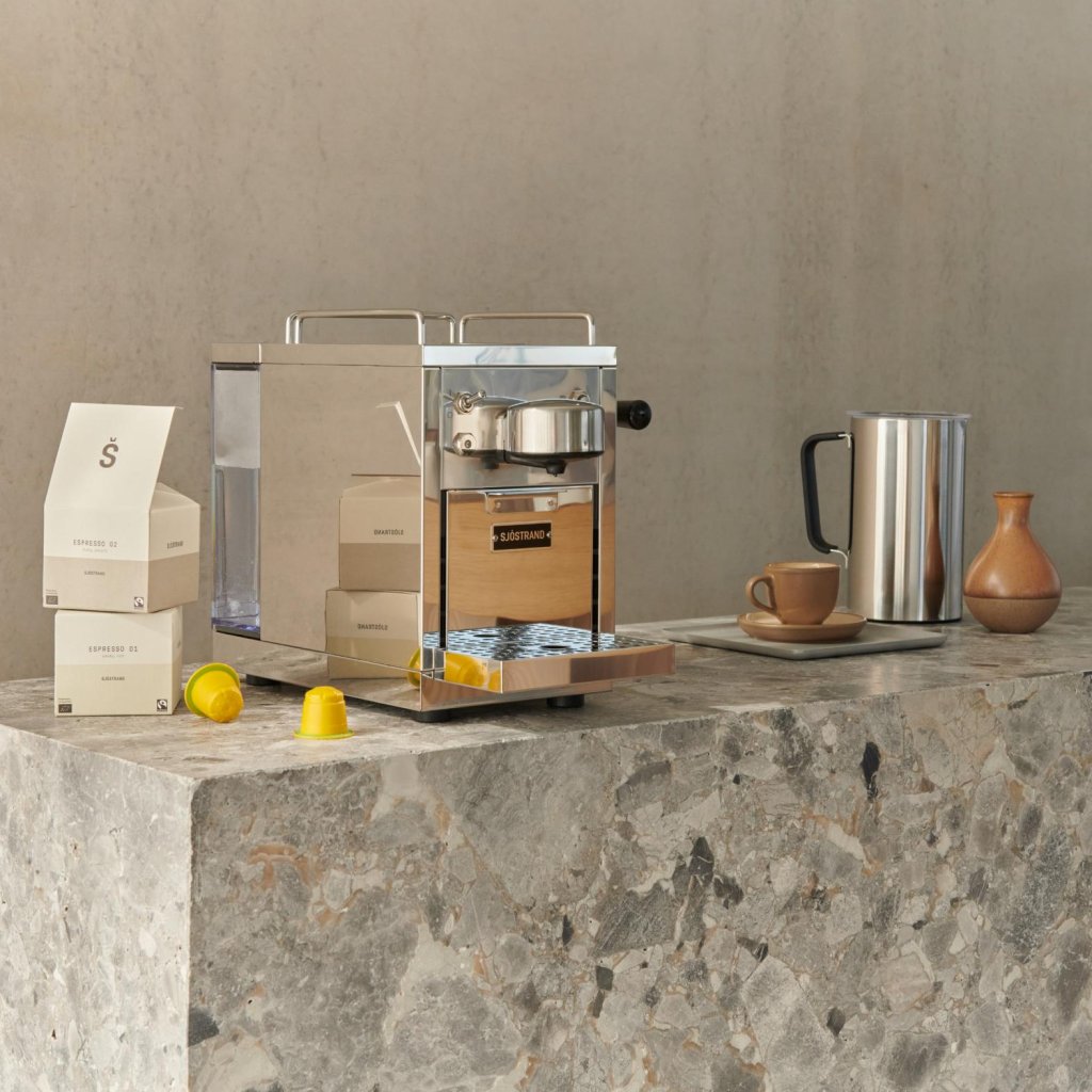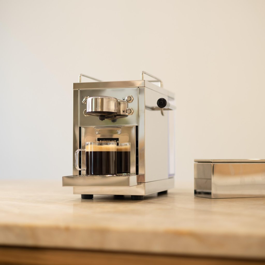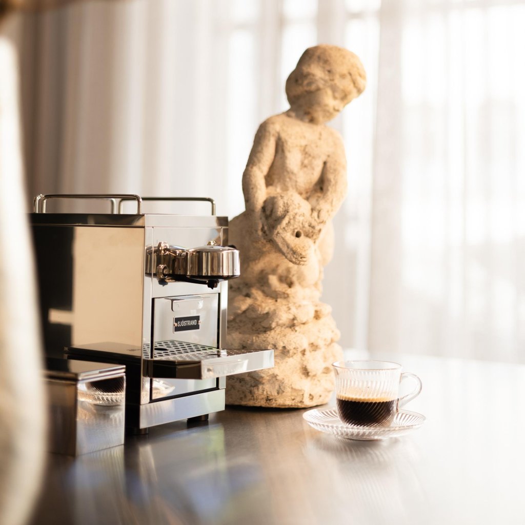 - Die Kaffeemaschine Sjöstrand THE ORIGINAL verkörpert die perfekte Kombination aus minimalistischem skandinavischem Design, präziser Technologie und einem verantwortungsvollen Umgang mit der Natur.