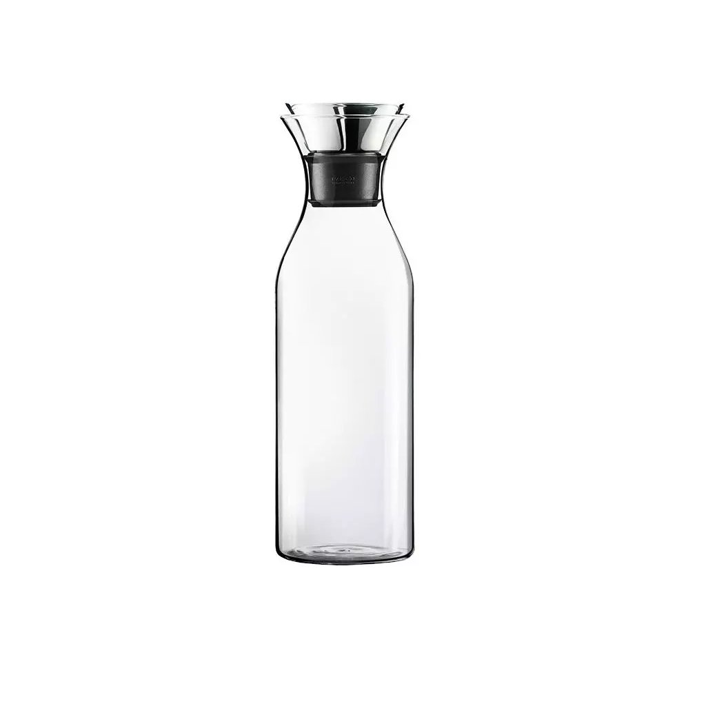 - Die Karaffe gehört zur Eva Solo Familie der tropffreien Produkte. Der patentierte Hals aus Edelstahl und Silikongummi ist so konzipiert, dass das Wasser leicht über den Rand direkt ins Glas fließen kann.