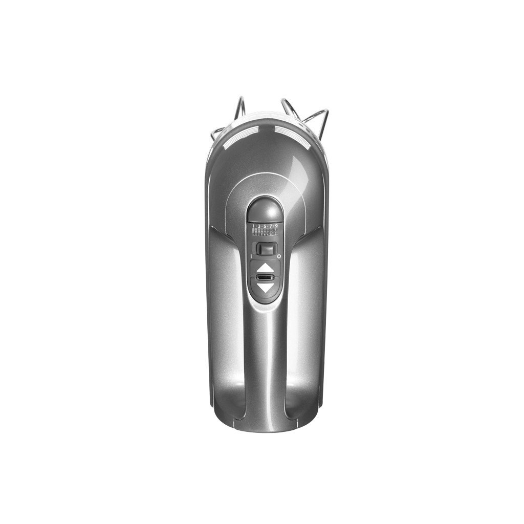 Der Handrührer mit neun Geschwindigkeiten verfügt über eine Langsamstartfunktion. Es wird immer auf der niedrigsten Stufe geschlagen, damit der Teig nicht zu sehr verrührt wird. Im Vergleich zu anderen elektrischen Quirlen ist er größer und auch leistungsfähiger. Wir empfehlen Ihnen daher, die aufgeschlagenen Zutaten zu beobachten und nur so lange aufzuschlagen, bis sie das gewünschte Aussehen und die gewünschte Konsistenz erreicht haben.