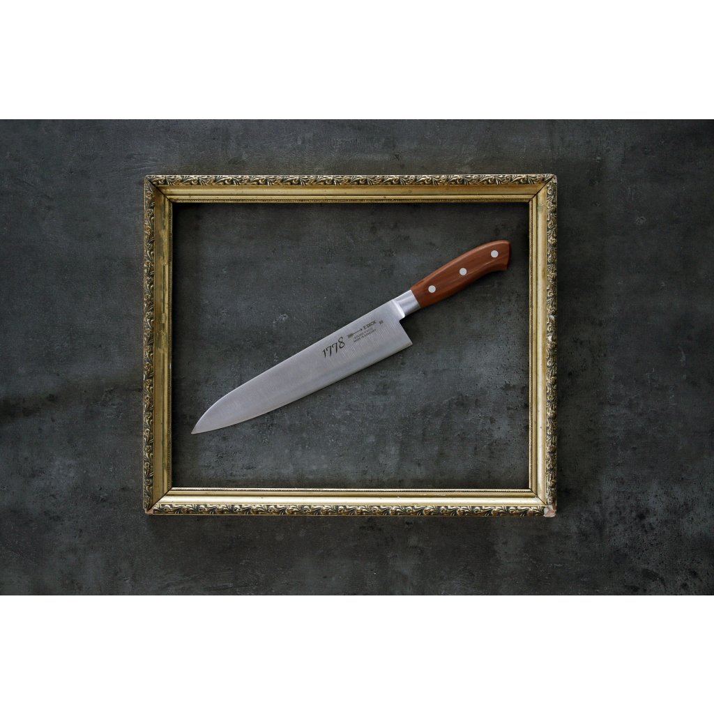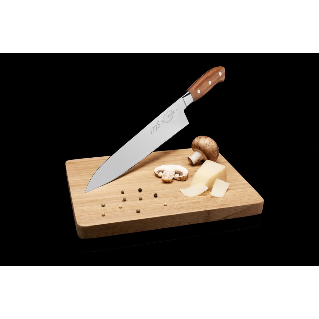 Das Herzstück einer jeden Profiküche ist ein Kochmesser mit stabiler Klinge. Es ist das wichtigste Küchenutensil für jede Gelegenheit: zum Schneiden von Gemüse, Fleisch oder Fisch. Der Griff des Kochmessers ist aus Pflaumenholz. Dieses Messer ist standardmäßig in einem Geschenkset verpackt.