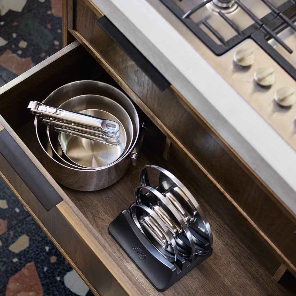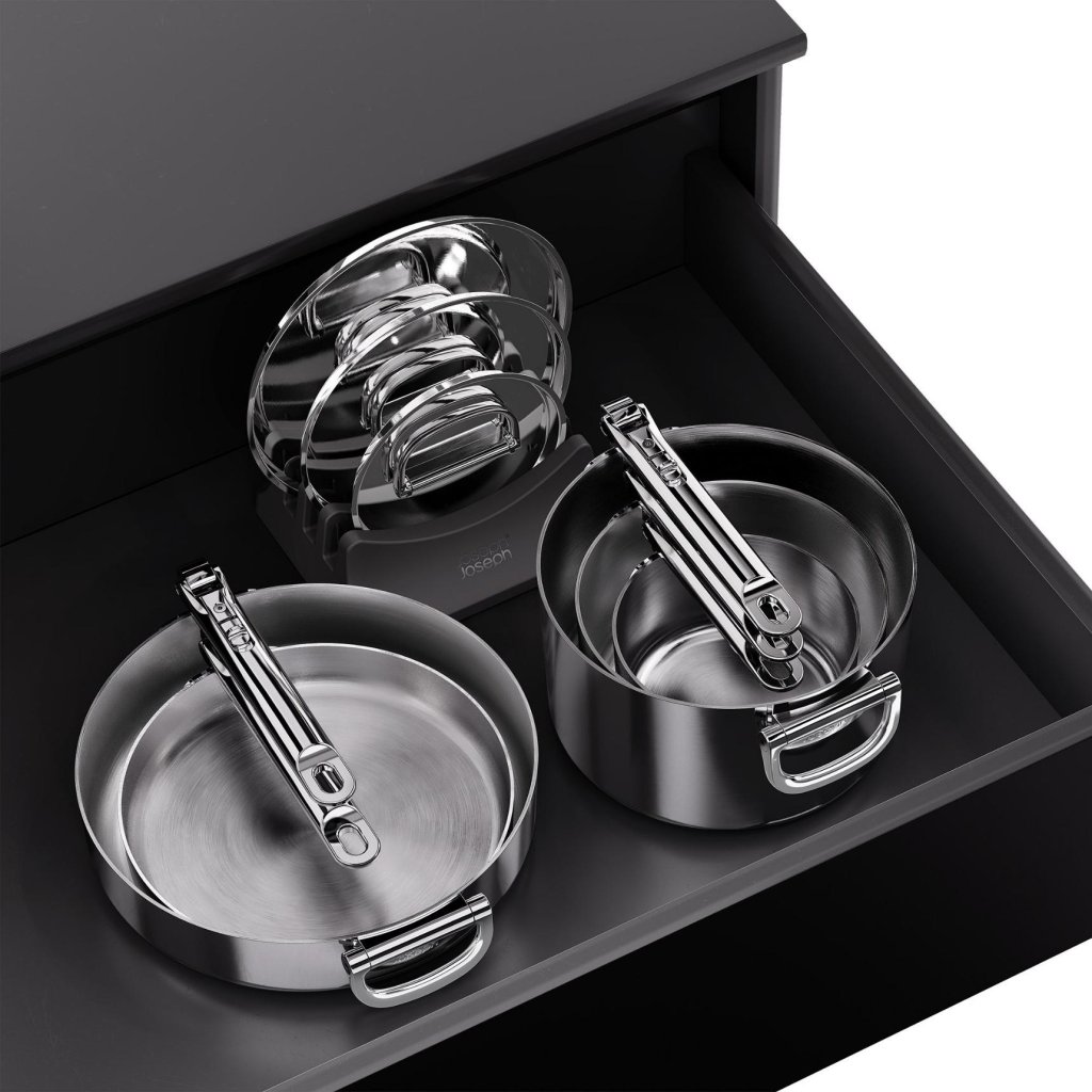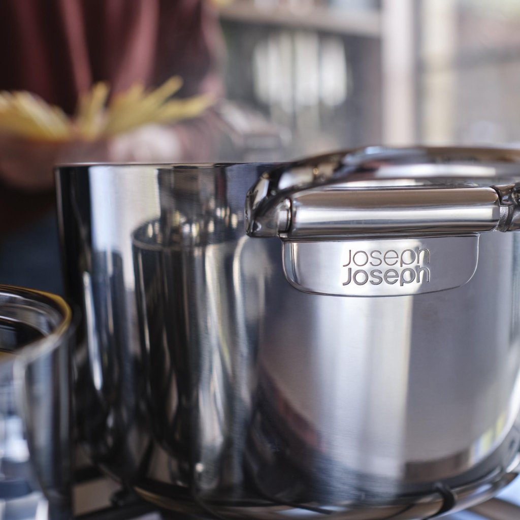 - Das Premium-Kochgeschirrset Joseph Joseph SPACE revolutioniert die Küchenorganisation dank eines ausgeklügelten Stapelsystems und einer professionellen dreilagigen Konstruktion.