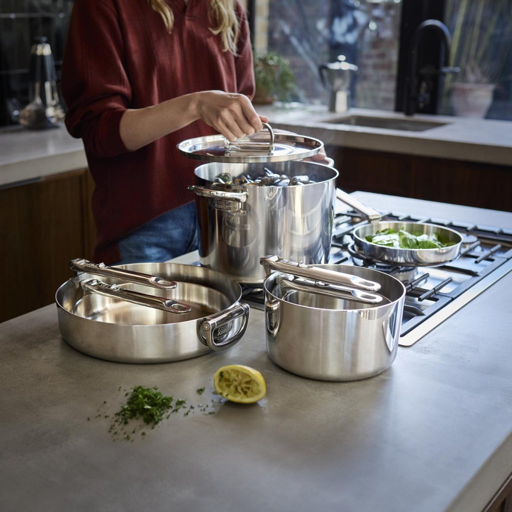 - Das Premium-Kochgeschirrset Joseph Joseph SPACE revolutioniert die Küchenorganisation dank eines ausgeklügelten Stapelsystems und einer professionellen dreilagigen Konstruktion.