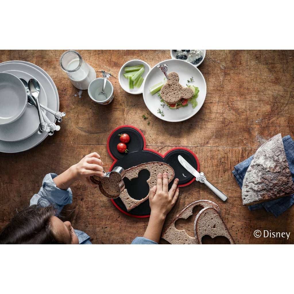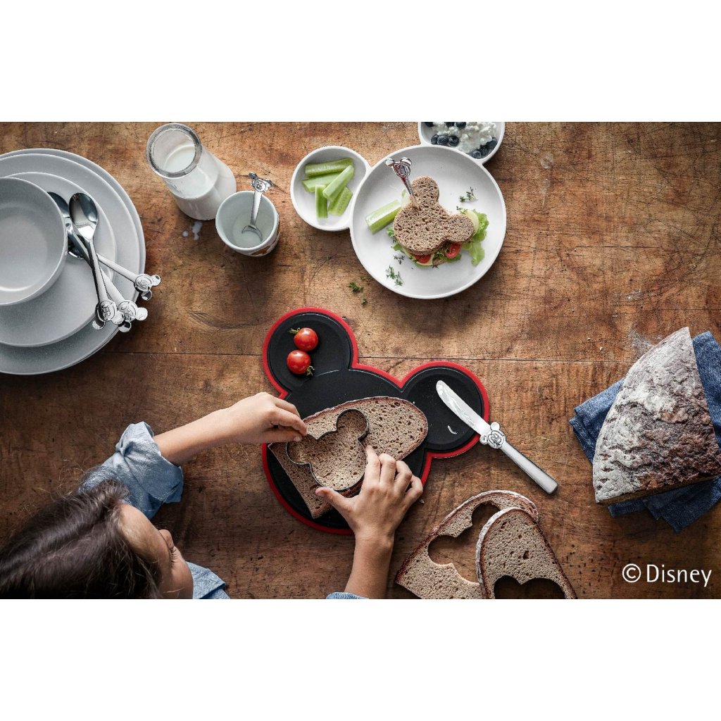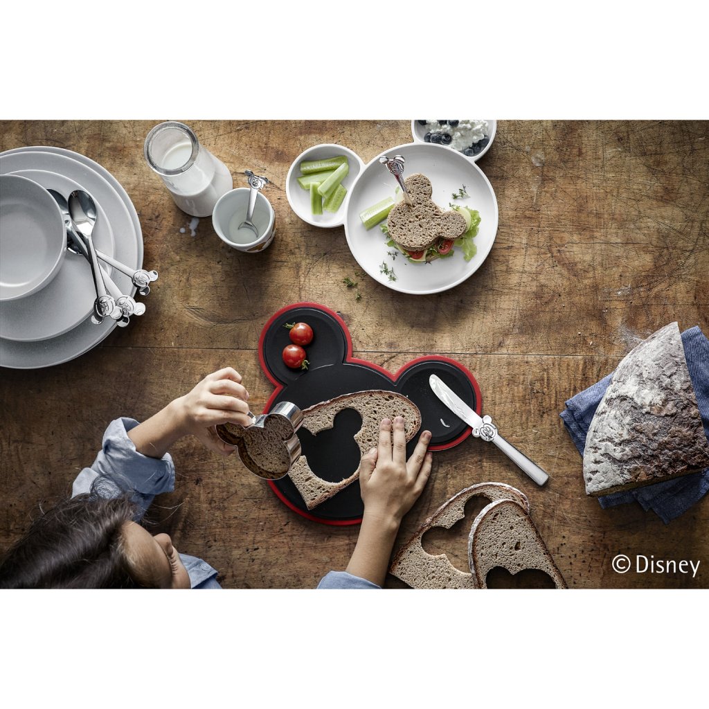 Das dreiteilige Mickey Mouse Set WMF ist für unsere Kleinen gedacht. Warum nicht ihre Kreativität beim Frühstück unterstützen? Die rutschfeste Kunststoffunterlage schützt den Tisch. Geben Sie dem Kind nur genügend Zeit, um sein Brot Mickey auszuschneiden. Dank des Edelstahlmessers mit gestanztem Mäusekopf, der gleichzeitig als Abrutschsicherung auf der Klinge dient, lässt sich zum Beispiel Brot mit Marmelade leicht bestreichen.