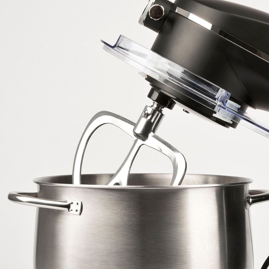 - ideal zum Kneten von Brotteig, zum Mischen feiner Teige und zum Aufschlagen von Sahne oder Eiweiß zu schaumigem Schaum