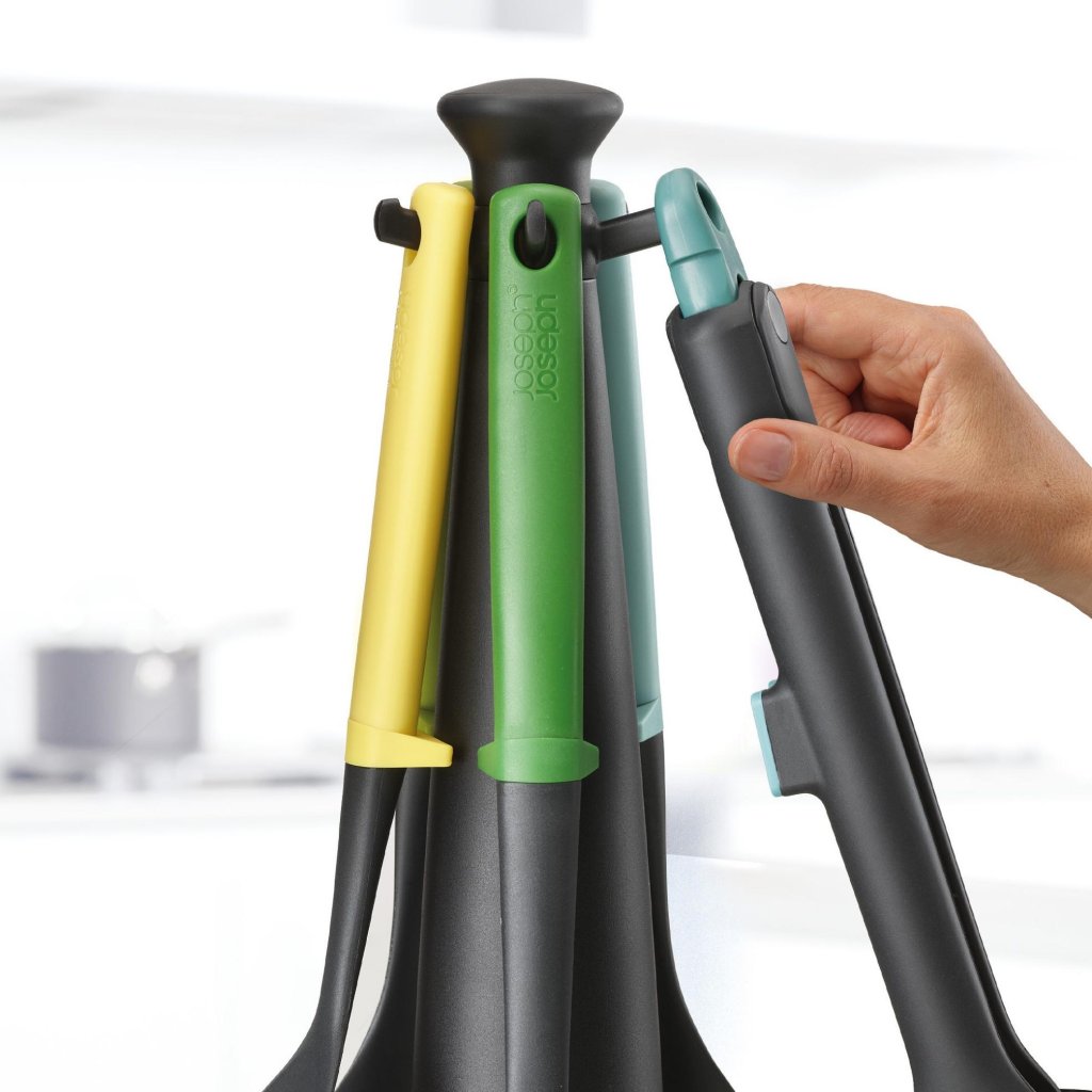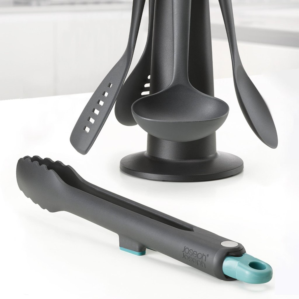 - Das fünfteilige Küchenhelfer-Set Joseph Joseph DUO OPAL mit praktischem Drehständer bietet eine übersichtliche und stilvolle Lösung für das tägliche Kochen und Servieren von Speisen.