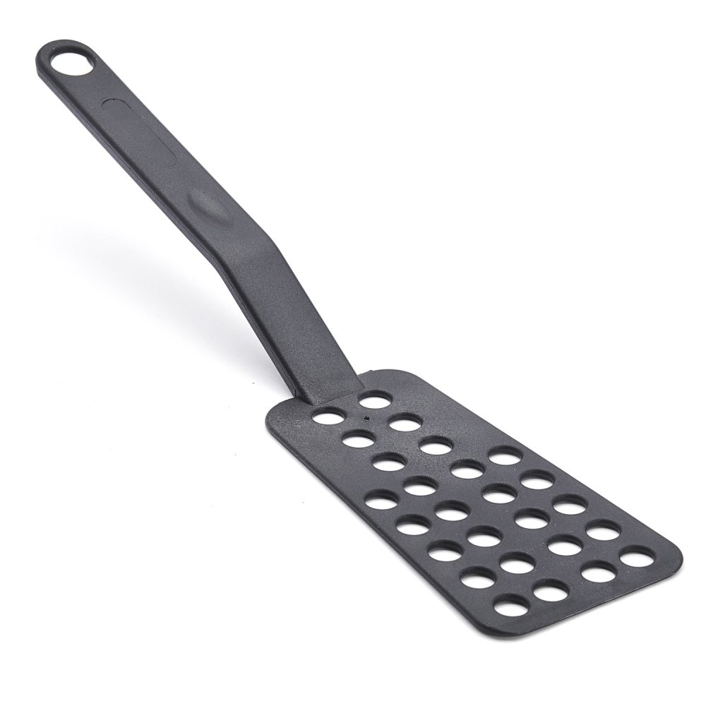 - Löcher in der Oberfläche des Wender helfen, überschüssiges Fett oder Flüssigkeiten während des Kochens abzulassen